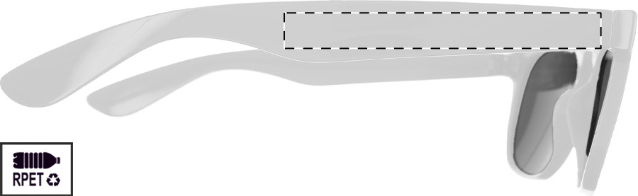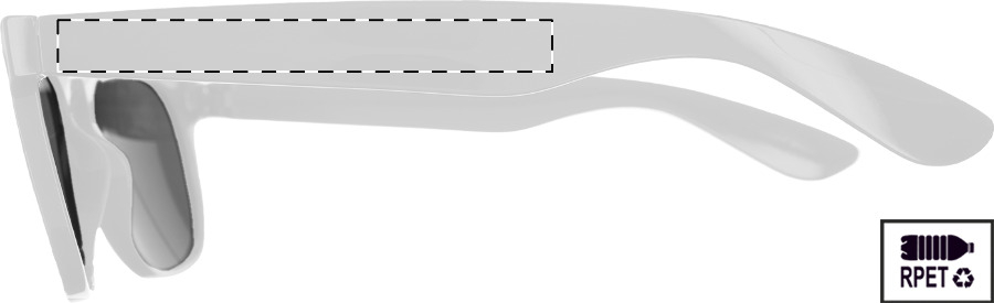 Klassische Sonnenbrille. Rahmen aus RPET. UV400-Schutz.Material: RPETMaße: 14x4.5x13.5cmGewicht: 0.028 kgVeredelung: Bestickung, Bedruckung, BeflockungHandling/Farbcodes: A/06, 29, 50, 03, 22, 23, 24, 25, 27Druckposition: RIGHT LEGDruckmaße: 65 x 8 mmDrucktechniken: DL, DO1, P2Druckposition: LEFT LEGDruckmaße: 65 x 8 mmDrucktechniken: DL, DO1, P2