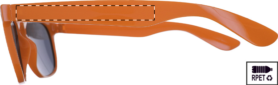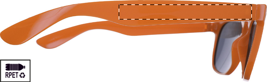 Sonnenbrille aus RPET mit UV 400 Schutz.Material: Recycletes PETVeredelungsposition 1: Rechter BügelTechnologie: TampondruckMaximale Farben: 4Durchmesser: 0Druckcode: P1Veredelungsposition 2: Linker BügelTechnologie: TampondruckMaximale Farben: 4Durchmesser: 0Druckcode: P1Veredelungsposition 3: GläserTechnologie: Vision-Film-DruckDurchmesser: 0Druckcode: VF
