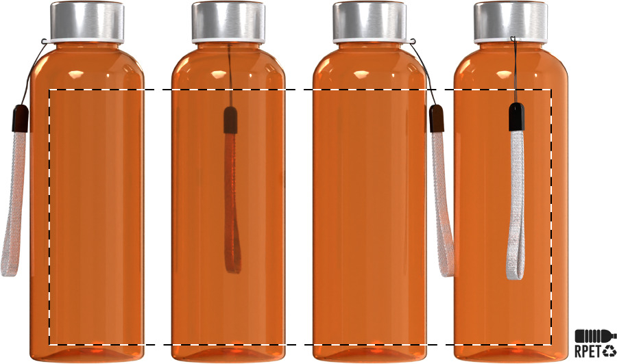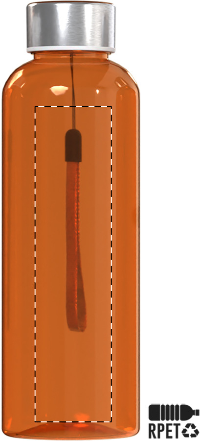 Trinkflasche aus RPET-Kunststoff (BPA-frei) mit Edelstahldeckel und Trageschlaufe. Füllmenge: 500 ml. Nicht geeignet für kohlensäurehaltige Getränke.