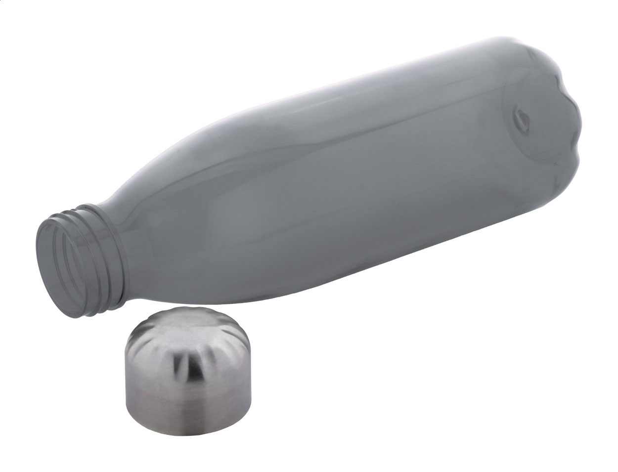 Trinkflasche aus RPET (BPA-frei) mit Edelstahldeckel. Füllmenge: 600 ml. Nicht geeignet für kohlensäurehaltige Getränke.