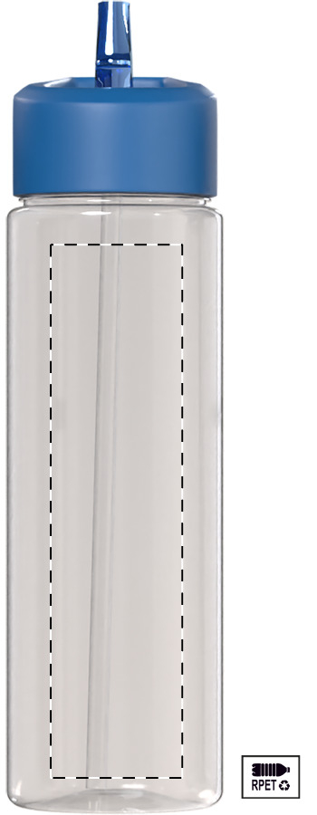 RPET-Sportflasche mit PP-Flip-Top-Trinkdeckel und integriertem Strohhalm. 650 ml. BPA-frei. Nicht geeignet für kohlensäurehaltige Getränke.