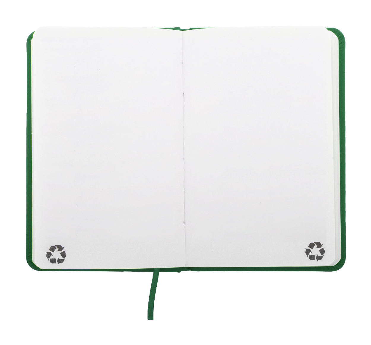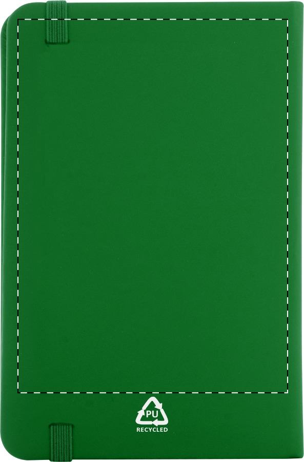 Notizbuch mit recyceltem PU-Lederbezug und 100 blanko Blättern aus Recyclingpapier. Mit farblich passendem Lesezeichen und Gummiband. A6-Größe.Maße: 95×145×15 mmFormat: A6Papiertyp Notizbücher: Blanko SeitenPapiergewicht: 70 g/m2Material: Recycelter PU-Lederbezug, Recycling Papier, GummiVeredelungsposition 1: VorderseiteTechnologie: UV-LED-Druck - EinzelnamenDurchmesser: 0Druckcode: NUVBTechnologie: TampondruckMaximale Farben: 4Durchmesser: 0Druckcode: P1Technologie: SiebdruckMaximale Farben: 2Durchmesser: 0Druckcode: S1Technologie: UV LED DruckDurchmesser: 0Druckcode: UVBVeredelungsposition 2: RückseiteTechnologie: UV-LED-Druck - EinzelnamenDurchmesser: 0Druckcode: NUVBTechnologie: TampondruckMaximale Farben: 4Durchmesser: 0Druckcode: P1Technologie: SiebdruckMaximale Farben: 2Durchmesser: 0Druckcode: S1Technologie: UV LED DruckDurchmesser: 0Druckcode: UVB