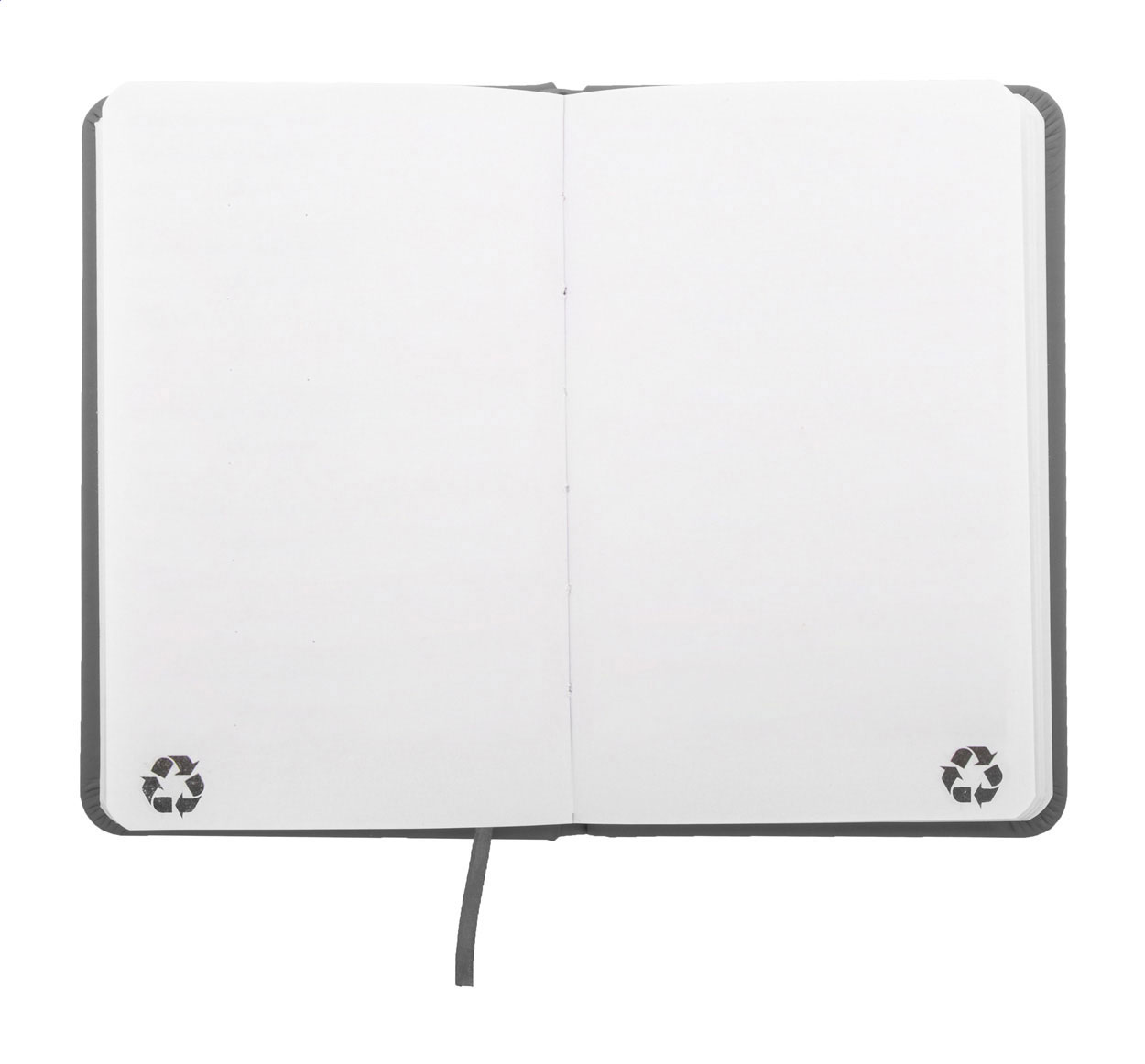 Notizbuch mit recyceltem PU-Lederbezug und 100 blanko Blättern aus Recyclingpapier. Mit farblich passendem Lesezeichen und Gummiband. A6-Größe.