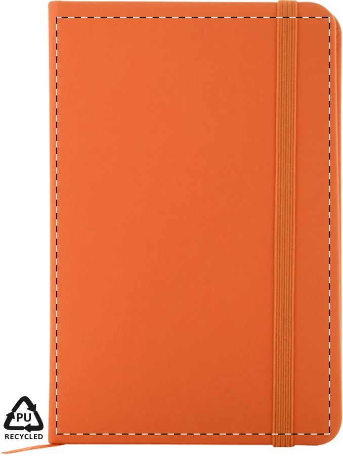 Notizbuch mit recyceltem PU-Lederbezug und 100 linierten Blättern aus Recyclingpapier. Mit farblich passendem Lesezeichen und Gummiband. A6-Größe.Maße: 95×145×15 mmFormat: A6Papiertyp Notizbücher: Linierte SeitenPapiergewicht: 70 g/m2Material: Recycelter PU-Lederbezug, Recycling Papier, GummiVeredelungsposition 1: VorderseiteTechnologie: UV-LED-Druck - EinzelnamenDurchmesser: 0Druckcode: NUVBTechnologie: TampondruckMaximale Farben: 4Durchmesser: 0Druckcode: P1Technologie: SiebdruckMaximale Farben: 2Durchmesser: 0Druckcode: S1Technologie: UV LED DruckDurchmesser: 0Druckcode: UVBVeredelungsposition 2: RückseiteTechnologie: UV-LED-Druck - EinzelnamenDurchmesser: 0Druckcode: NUVBTechnologie: TampondruckMaximale Farben: 4Durchmesser: 0Druckcode: P1Technologie: SiebdruckMaximale Farben: 2Durchmesser: 0Druckcode: S1Technologie: UV LED DruckDurchmesser: 0Druckcode: UVB