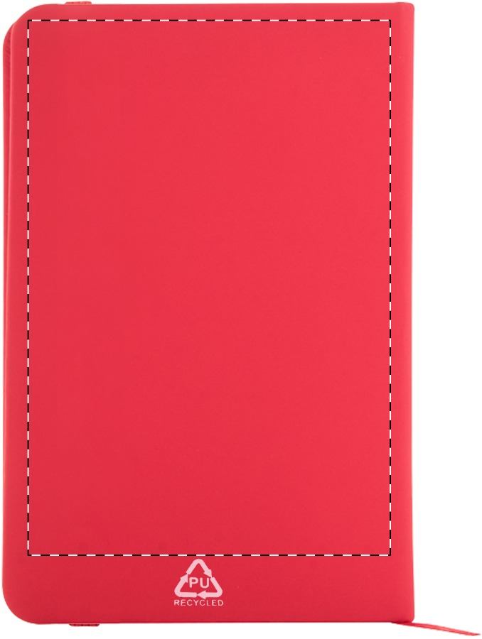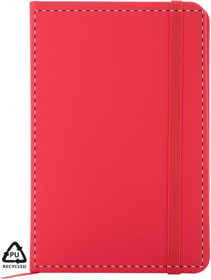 Notizbuch mit recyceltem PU-Lederbezug und 100 linierten Blättern aus Recyclingpapier. Mit farblich passendem Lesezeichen und Gummiband. A6-Größe.Maße: 95×145×15 mmFormat: A6Papiertyp Notizbücher: Linierte SeitenPapiergewicht: 70 g/m2Material: Recycelter PU-Lederbezug, Recycling Papier, GummiVeredelungsposition 1: VorderseiteTechnologie: UV-LED-Druck - EinzelnamenDurchmesser: 0Druckcode: NUVBTechnologie: TampondruckMaximale Farben: 4Durchmesser: 0Druckcode: P1Technologie: SiebdruckMaximale Farben: 2Durchmesser: 0Druckcode: S1Technologie: UV LED DruckDurchmesser: 0Druckcode: UVBVeredelungsposition 2: RückseiteTechnologie: UV-LED-Druck - EinzelnamenDurchmesser: 0Druckcode: NUVBTechnologie: TampondruckMaximale Farben: 4Durchmesser: 0Druckcode: P1Technologie: SiebdruckMaximale Farben: 2Durchmesser: 0Druckcode: S1Technologie: UV LED DruckDurchmesser: 0Druckcode: UVB