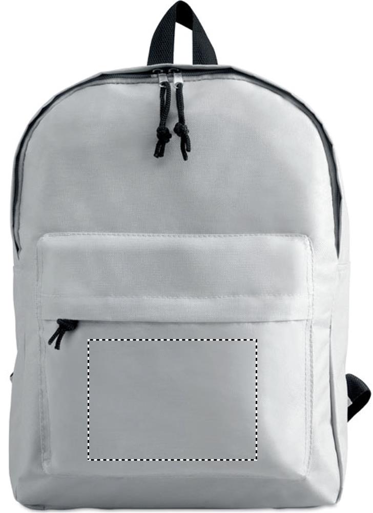 Rucksack mit Fronttasche und Reißverschluss. 600D PolyesterMaterial: PETMaße: 29x11,5x38 cmGewicht: 0.248 kgVeredelung: Bestickung, Bedruckung, BeflockungHandling/Farbcodes: B/03, 04, 05, 06, 07, 10, 37, 48, 15, 60Druckposition: FRONT POCKETDruckmaße: 140 x 100 mmDrucktechniken: S3, T1, TD1, TRDruckposition: FRONT ABOVE POCKETDruckmaße: 190 x 70 mmDrucktechniken: TR, S3, T1, TD1