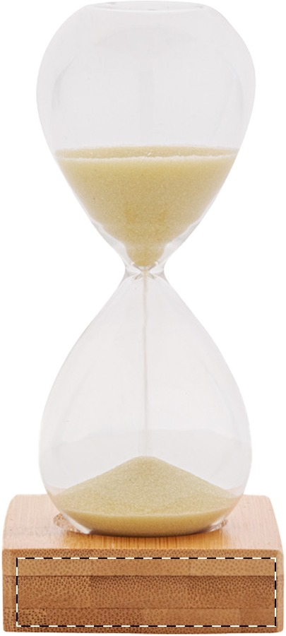 Sanduhr 5 Minuten. Borosilikatglas mit Sockel aus Buchenholz.Material: BorosilikatglasMaße: 6,5x6,5x13,8cmGewicht: 0.123 kgFarbe: BeigeVeredelung: Bestickung, Bedruckung, BeflockungHandling/Farbcodes: B/13Druckposition: BASE FRONTDruckmaße: 50 x 10 mmDrucktechniken: L3, P5Druckposition: BASE TOPDruckmaße: 50 x 5 mmDrucktechniken: L3, P5Druckposition: HOURGLASS SIDE 1Druckmaße: 20 x 15 mmDrucktechniken: P7Druckposition: HOURGLASS SIDE 2Druckmaße: 20 x 15 mmDrucktechniken: P7
