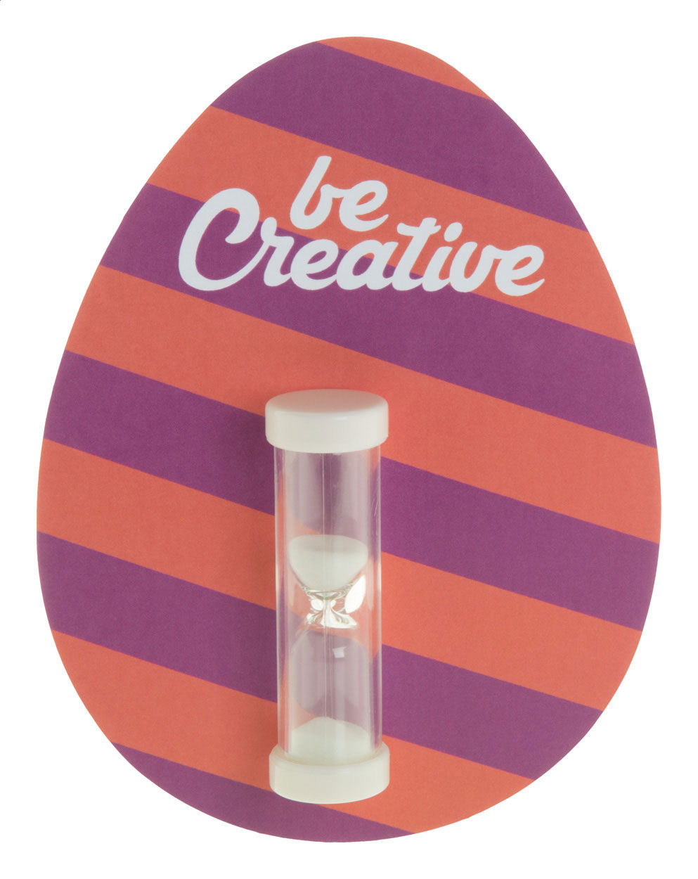 Sanduhr mit farblich abgestimmten Sand und Verschlusskappen, Laufzeit: 3 Min., Bedruckung erfolgt auf der Rückwand aus Papier.