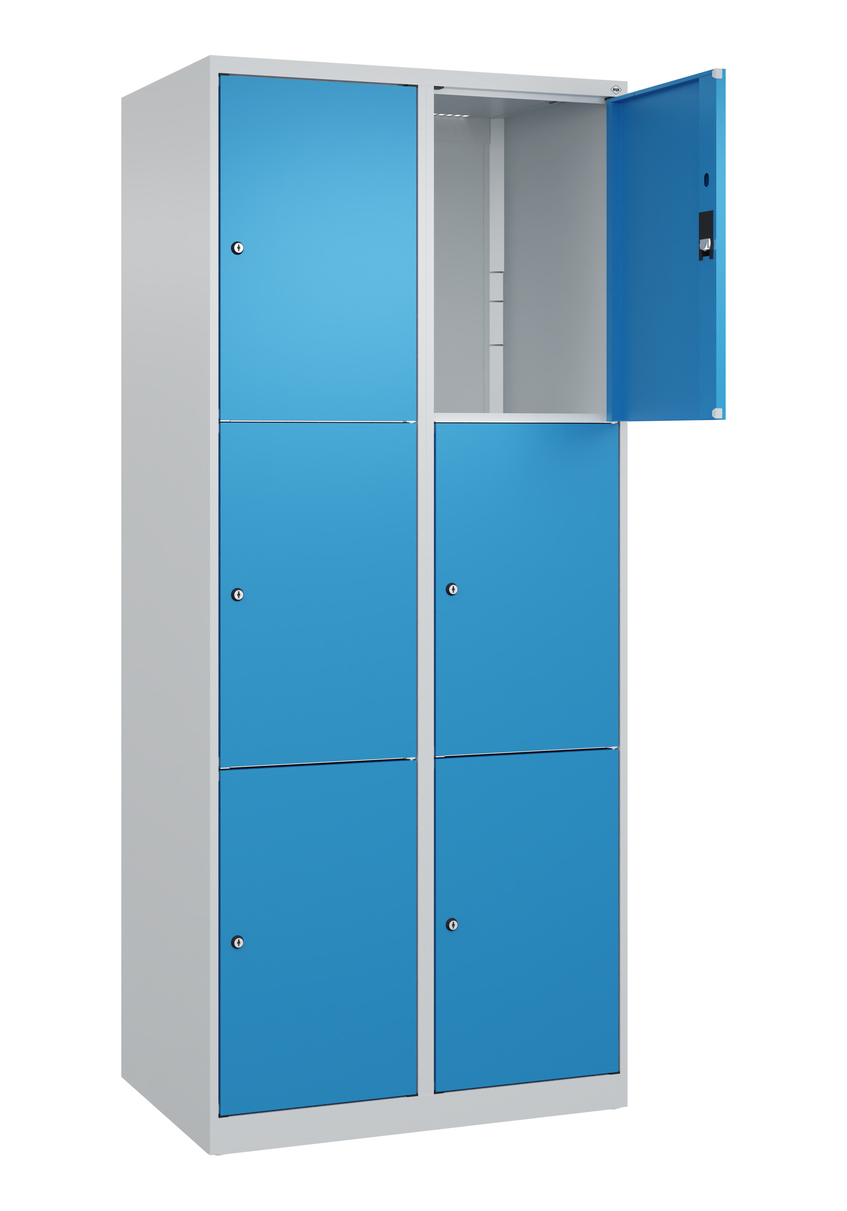 Schließfachschrank Classic Plus, 6 Fächer, 1850x800x500mm RAL 5012 Lichtblau RAL 7035 Lichtgrau