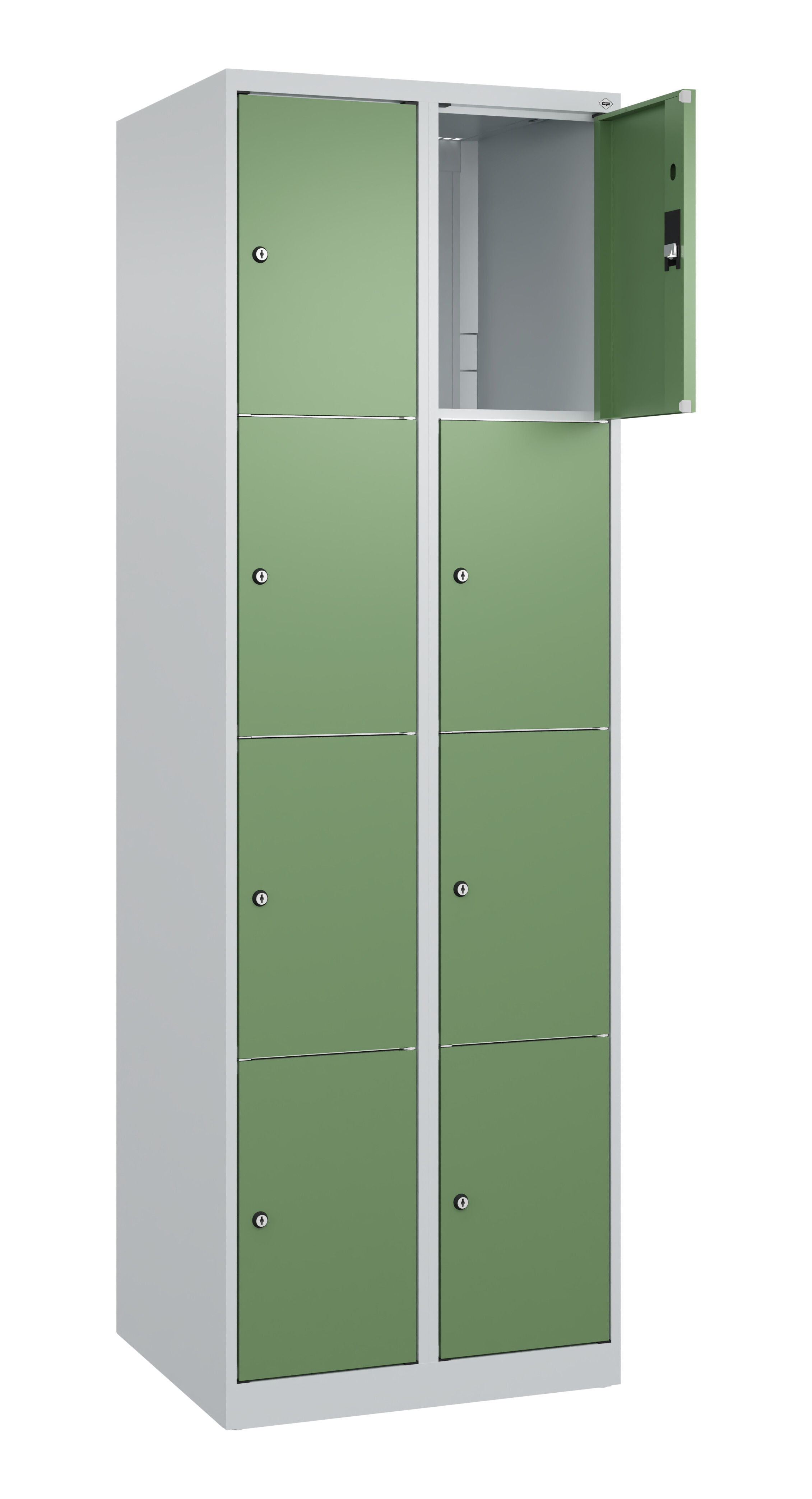 Schließfachschrank Classic Plus, 8 Fächer, 1850x600x500mm RAL 6011 Resedagrün RAL 7035 Lichtgrau
