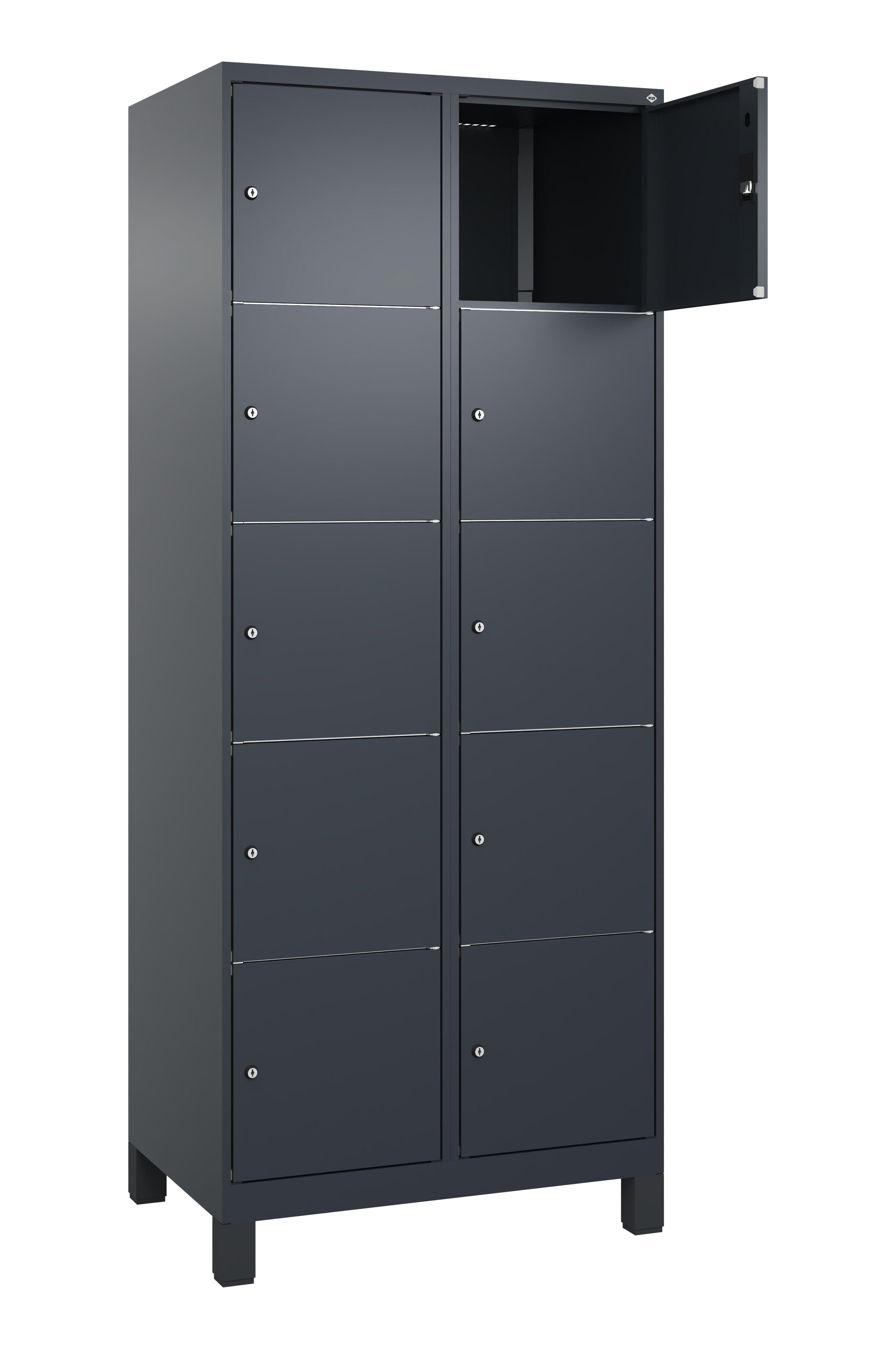 Schließfachschrank Classic Plus, Füße, 10 Fächer, 1950x800x500mm RAL 7016 Anthrazitgrau RAL 7016 Anthrazitgrau