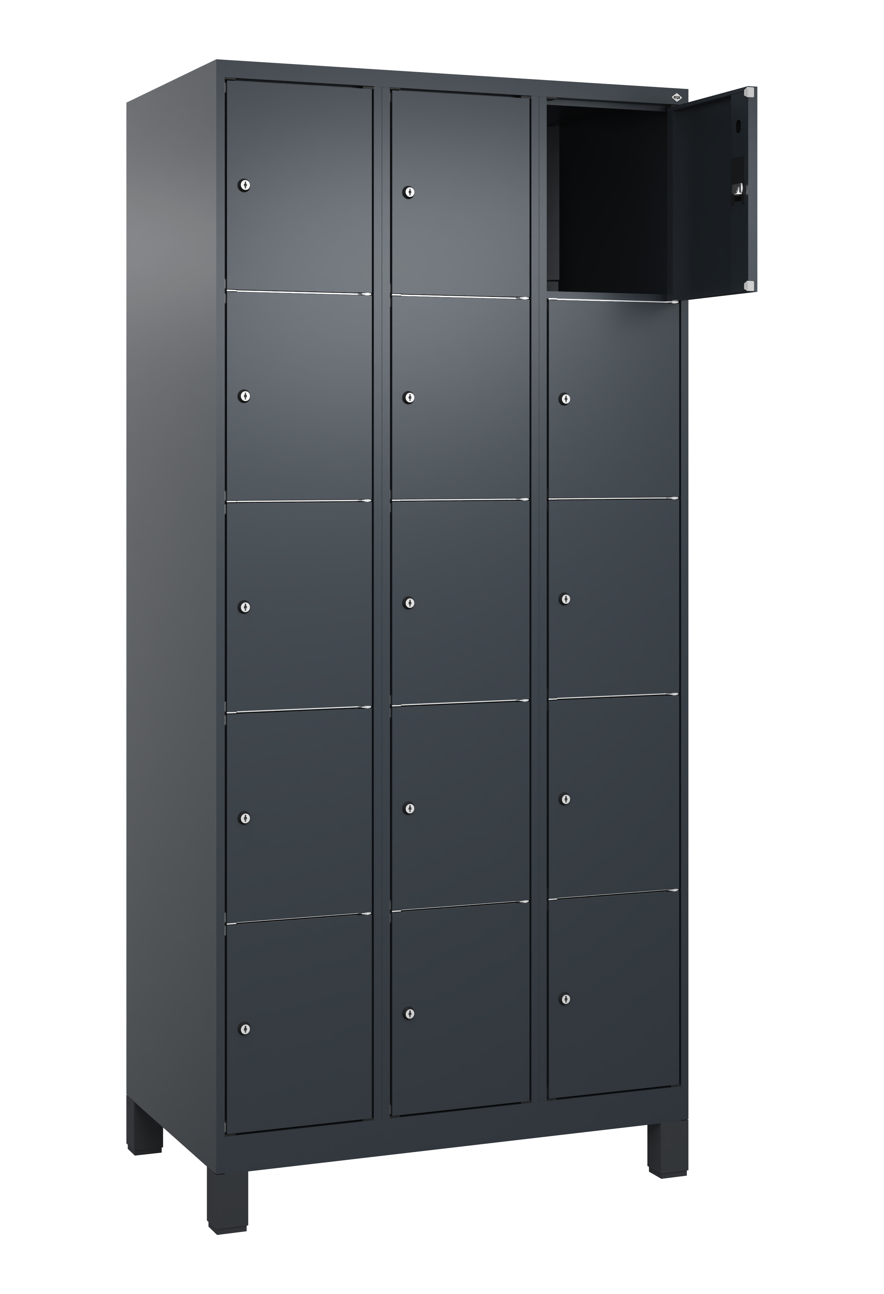 Schließfachschrank Classic Plus, Füße, 15 Fächer, 1950x900x500mm RAL 7016 Anthrazitgrau RAL 7016 Anthrazitgrau