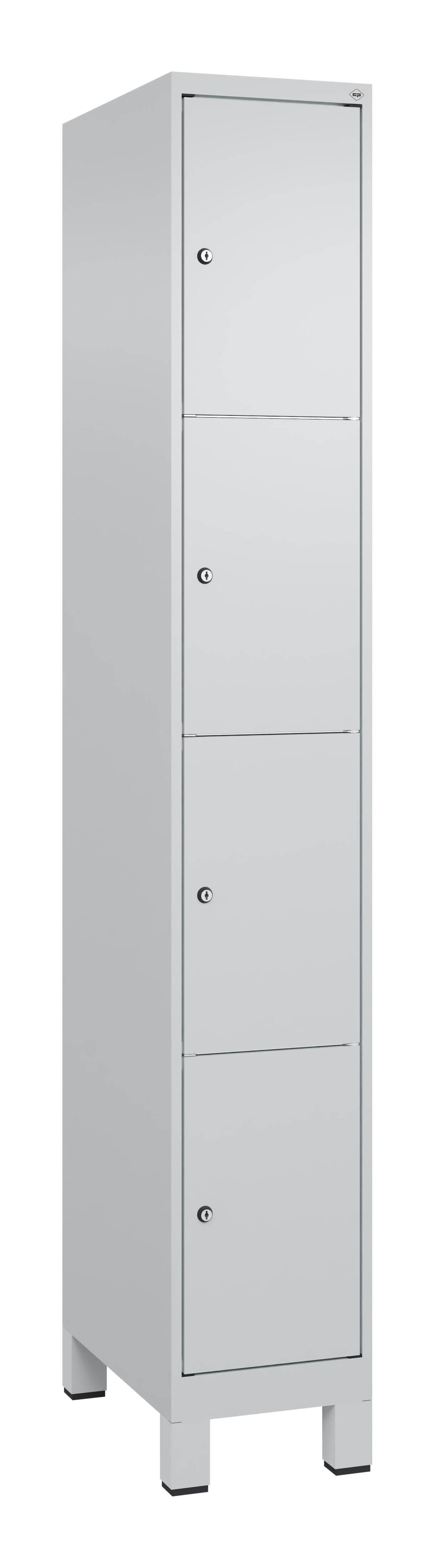Schließfachschrank Classic Plus, Füße, 4 Fächer, 1950x300x500mm RAL 7035 Lichtgrau RAL 7035 Lichtgrau