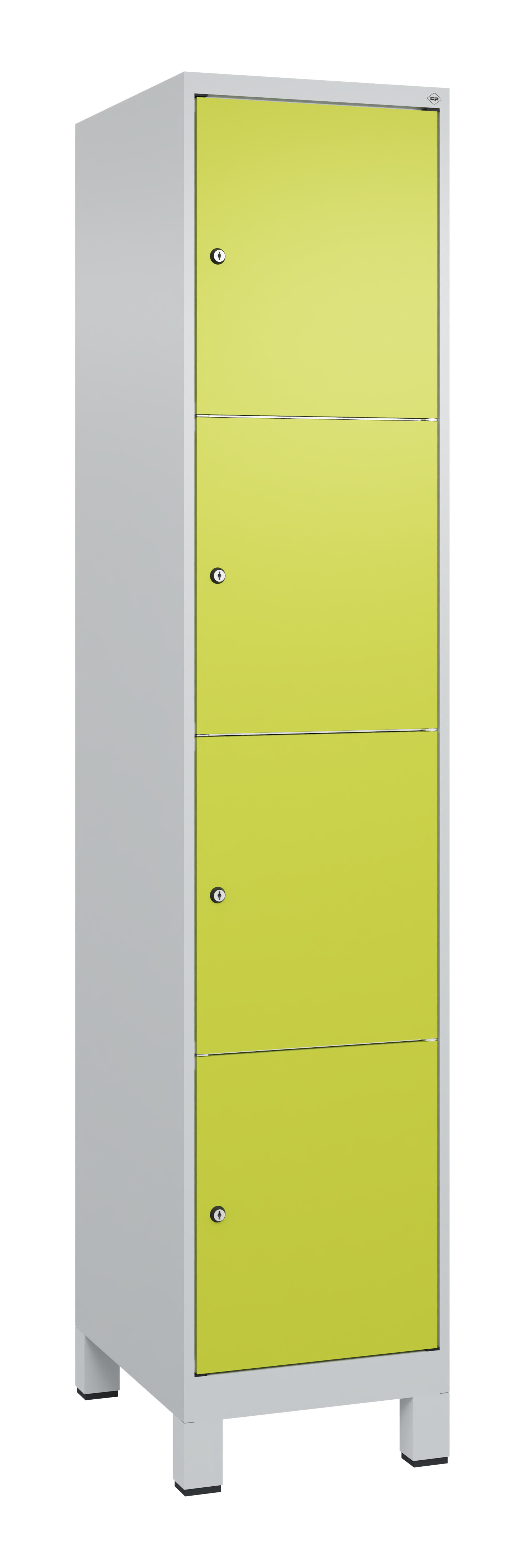 Schließfachschrank Classic Plus, Füße, 4 Fächer, 1950x400x500mm RAL 1108060 Clowngrün RAL 7035 Lichtgrau