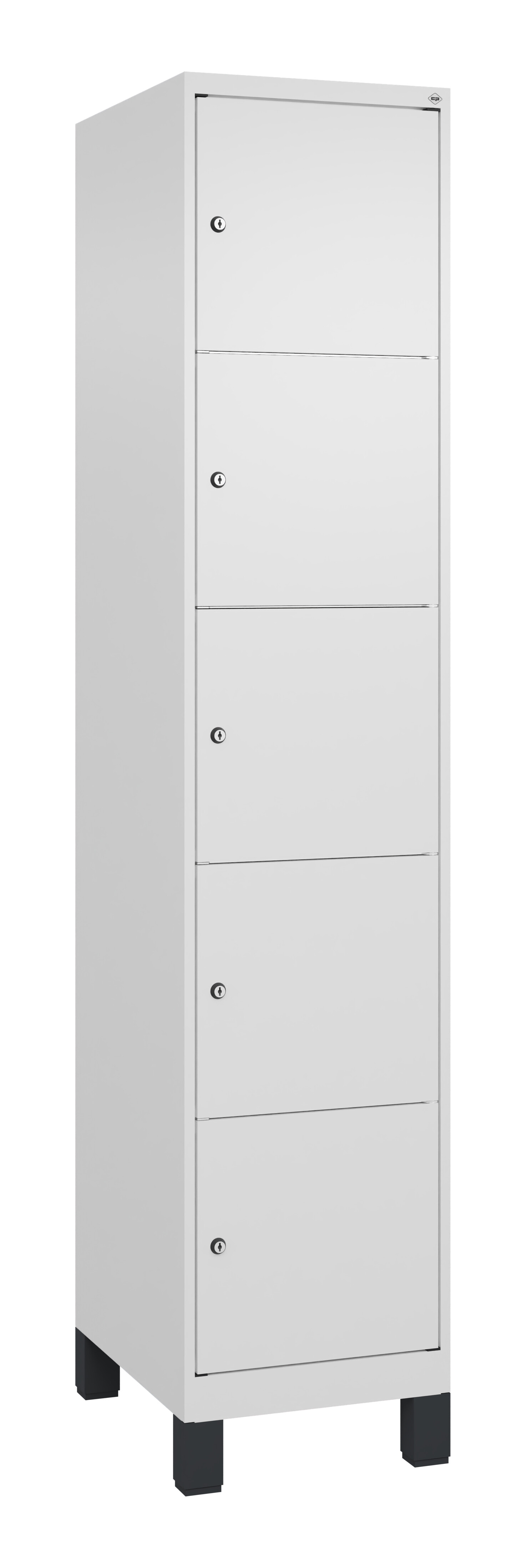 Schließfachschrank Classic Plus, Füße, 5 Fächer, 1950x400x500mm RAL 9016 Verkehrsweiß RAL 9016 Verkehrsweiß
