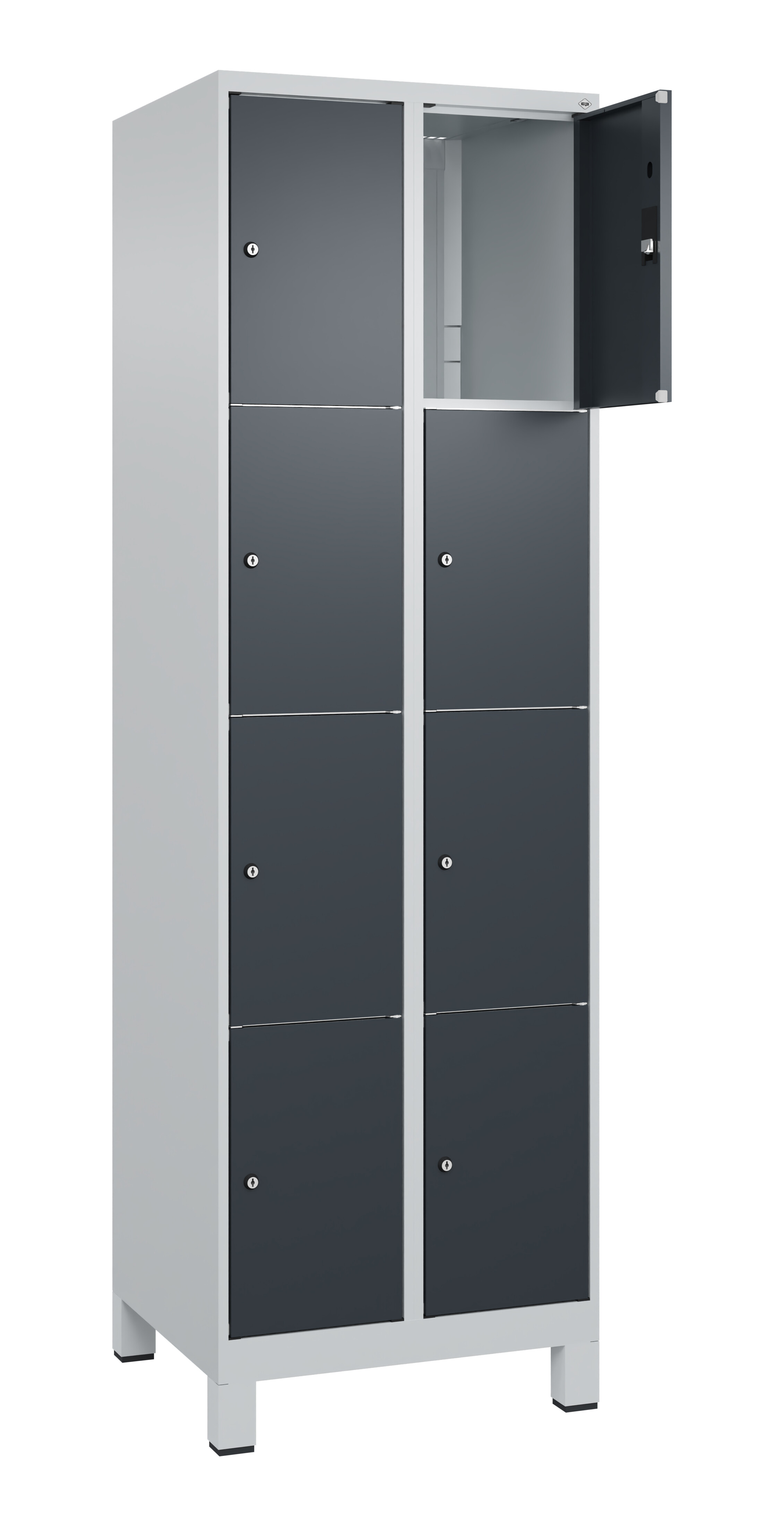 Schließfachschrank Classic Plus, Füße, 8 Fächer, 1950x600x500mm RAL 7016 Anthrazitgrau RAL 7035 Lichtgrau