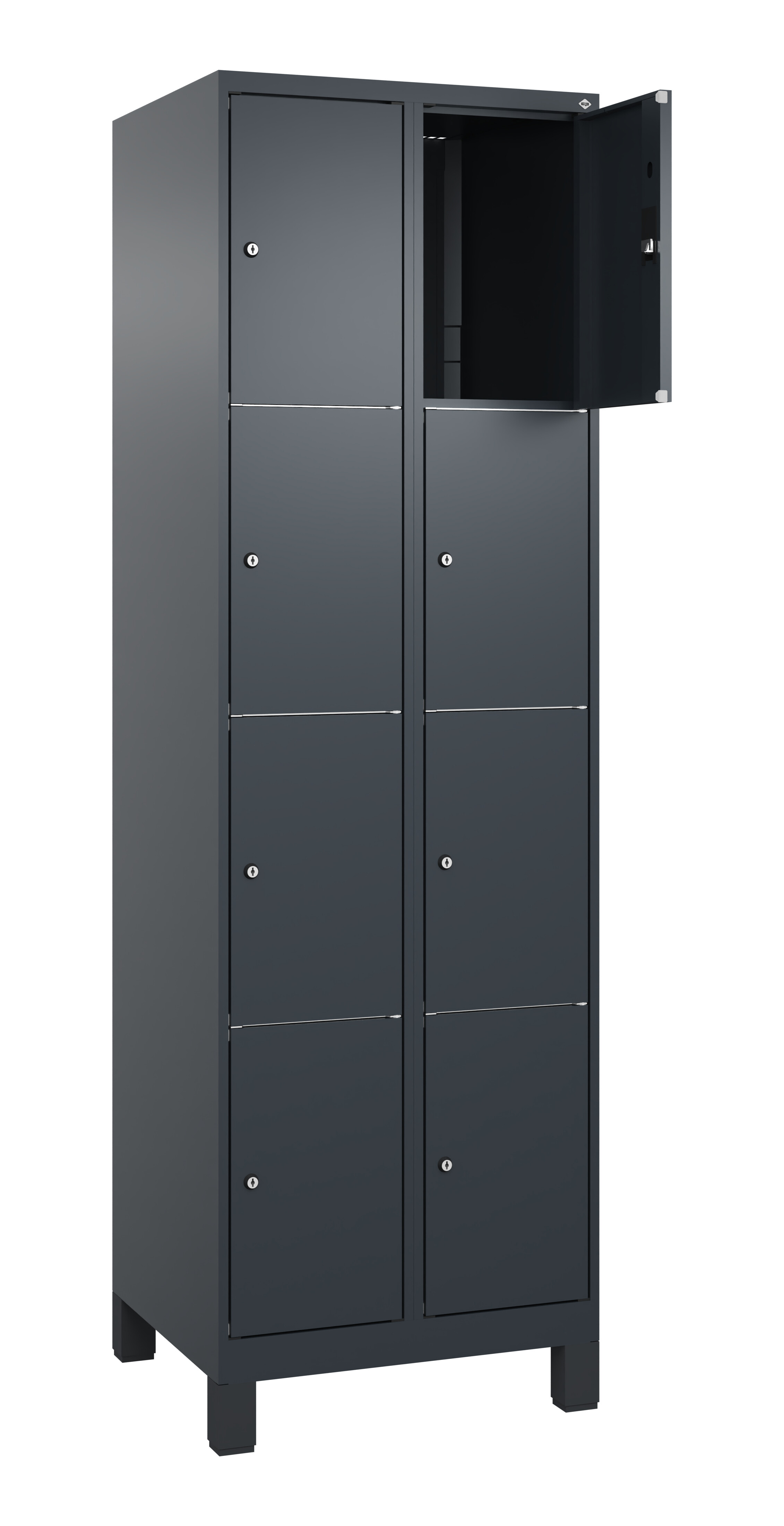 Schließfachschrank Classic Plus, Füße, 8 Fächer, 1950x600x500mm RAL 7016 Anthrazitgrau RAL 7016 Anthrazitgrau