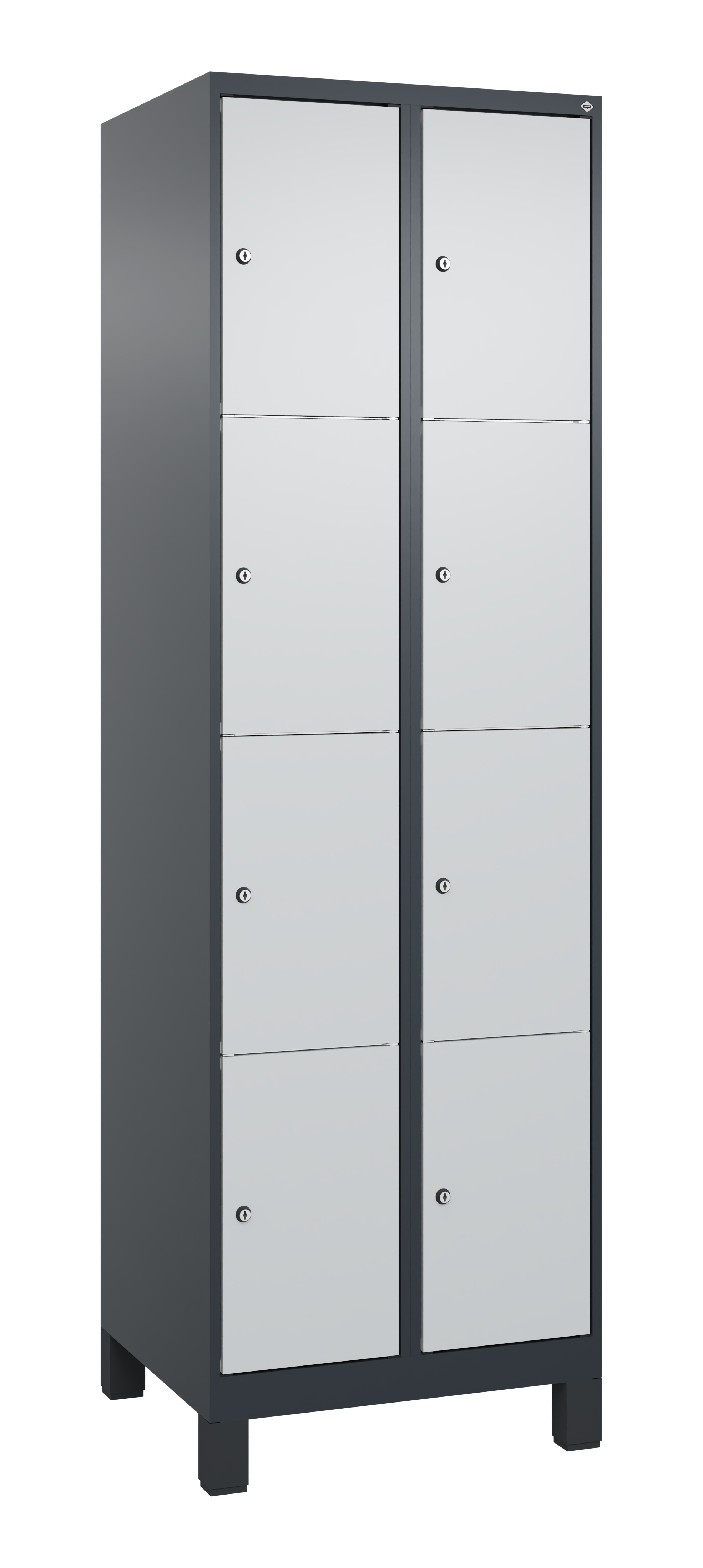Schließfachschrank Classic Plus, Füße, 8 Fächer, 1950x600x500mm RAL 7035 Lichtgrau RAL 7016 Anthrazitgrau