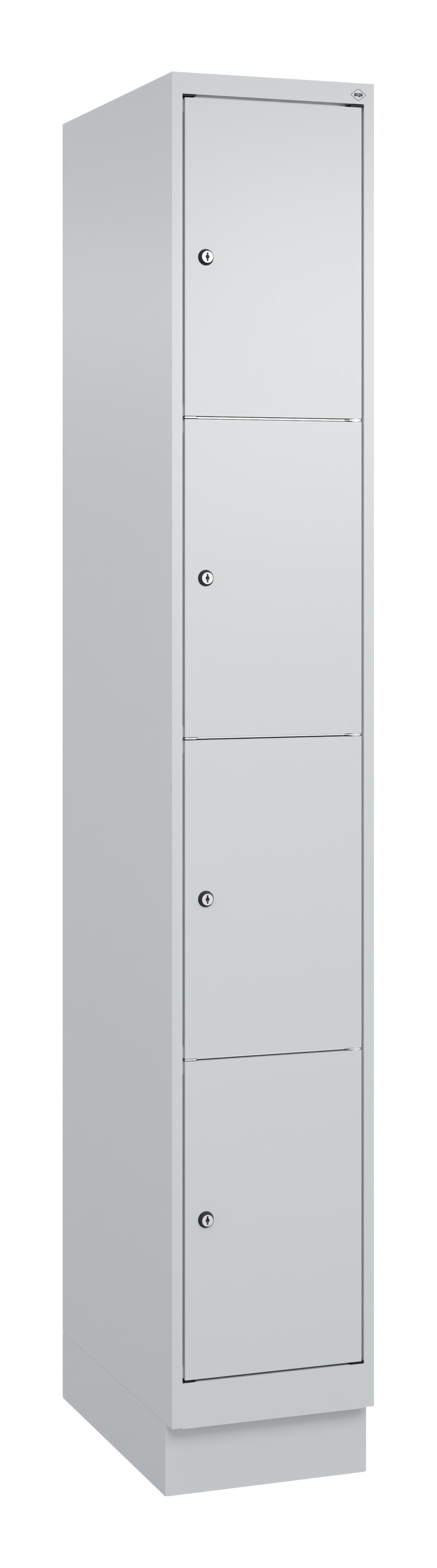 Schließfachschrank Classic Plus, Sockel, 4 Fächer, 1950x300x500mm RAL 7035 Lichtgrau RAL 7035 Lichtgrau