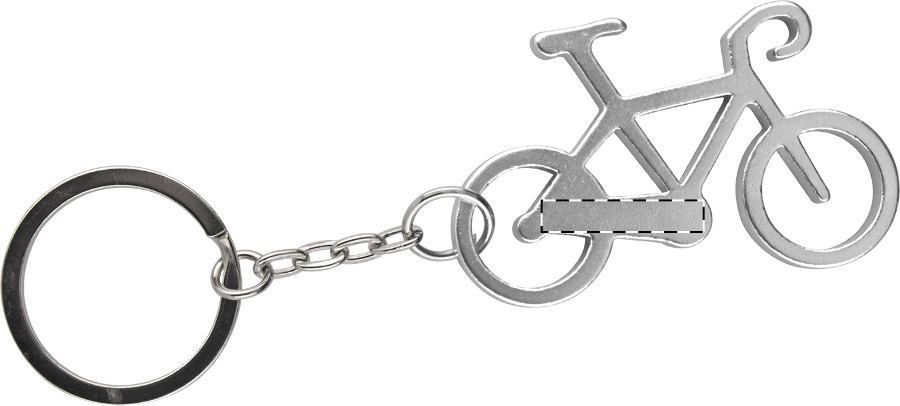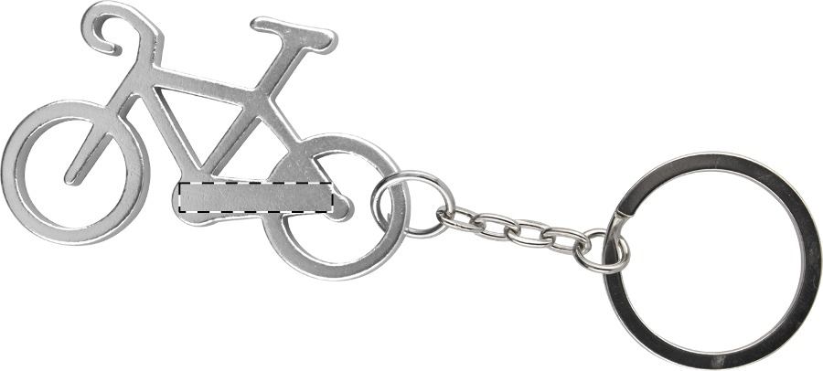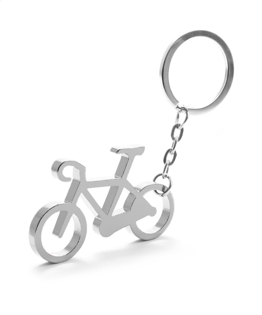 Aluminium-Schlüsselanhänger in Fahrradform mit Flaschenöffnerfunktion.