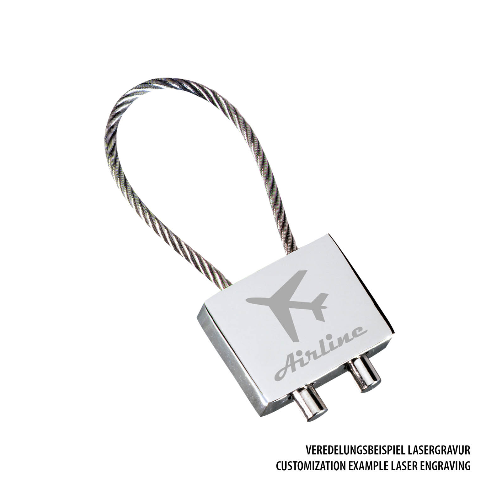 Ein stabiles Kabel und ansprechende Matt- oder Glanzmetall-Oberfläche für die pure, klare Linie - nicht nur am Schlüsselbund!Metall, mattsilber, silberGewicht: 24 gFormat in mm: 65 (L) x 25 (B) x 7 (H)Veredelungsvarianten: Lasergravur, Doming 900Druckfläche: 20 x 16 mmHandling: AMaterial: Metall