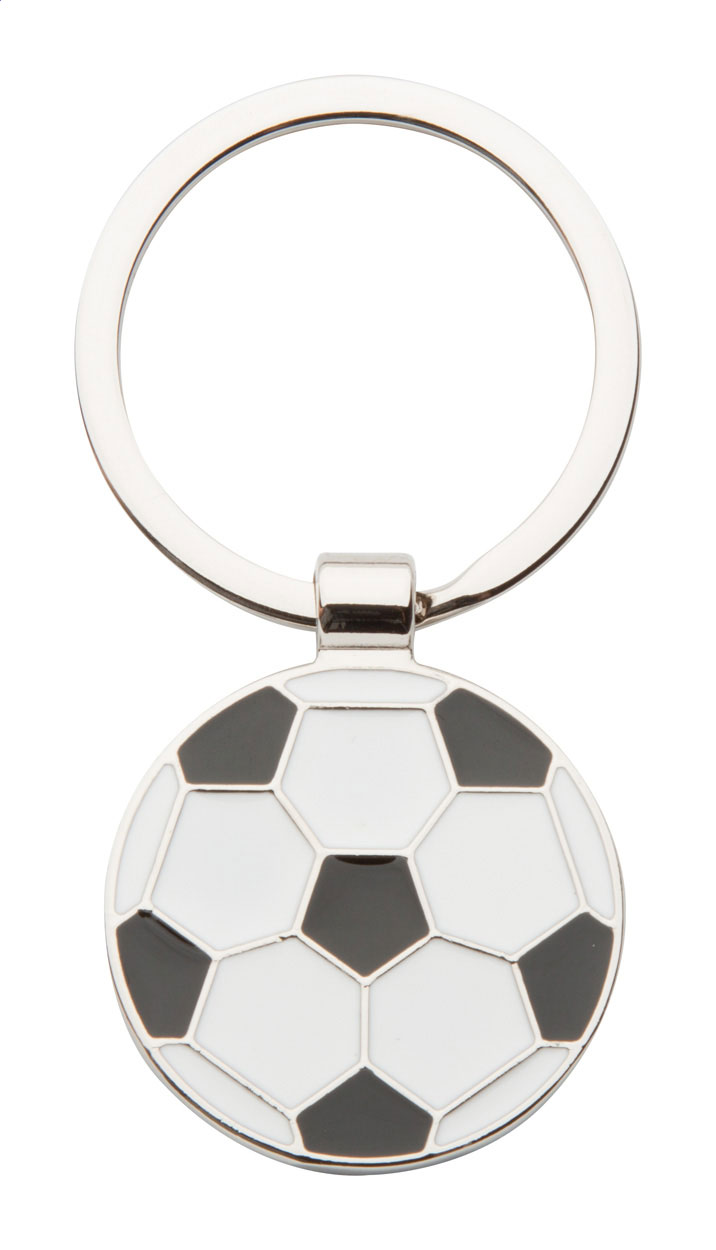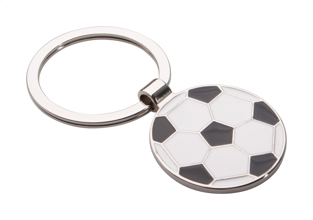 Metall-Schlüsselanhänger in Fußballform. Einzeln in schwarzer Geschenkbox.