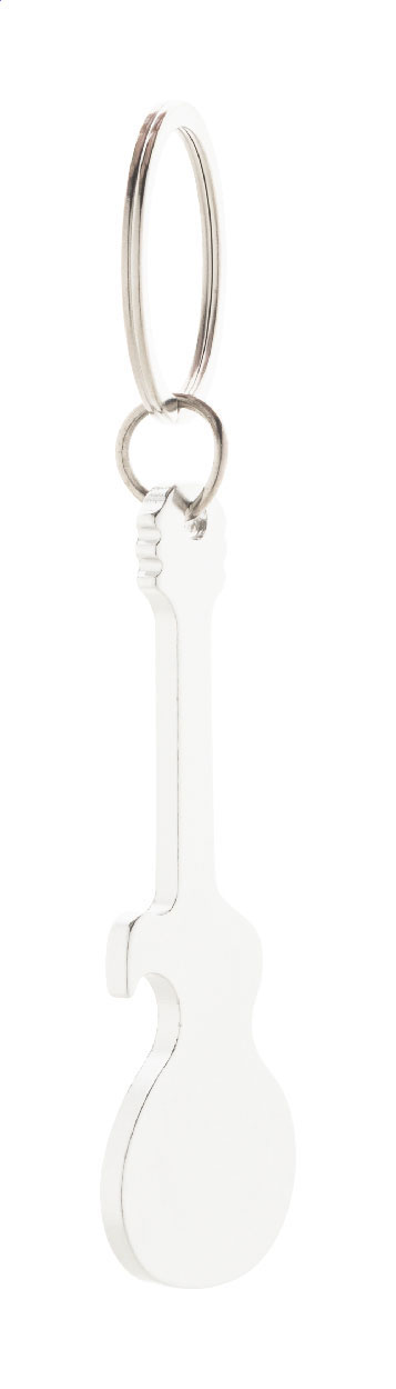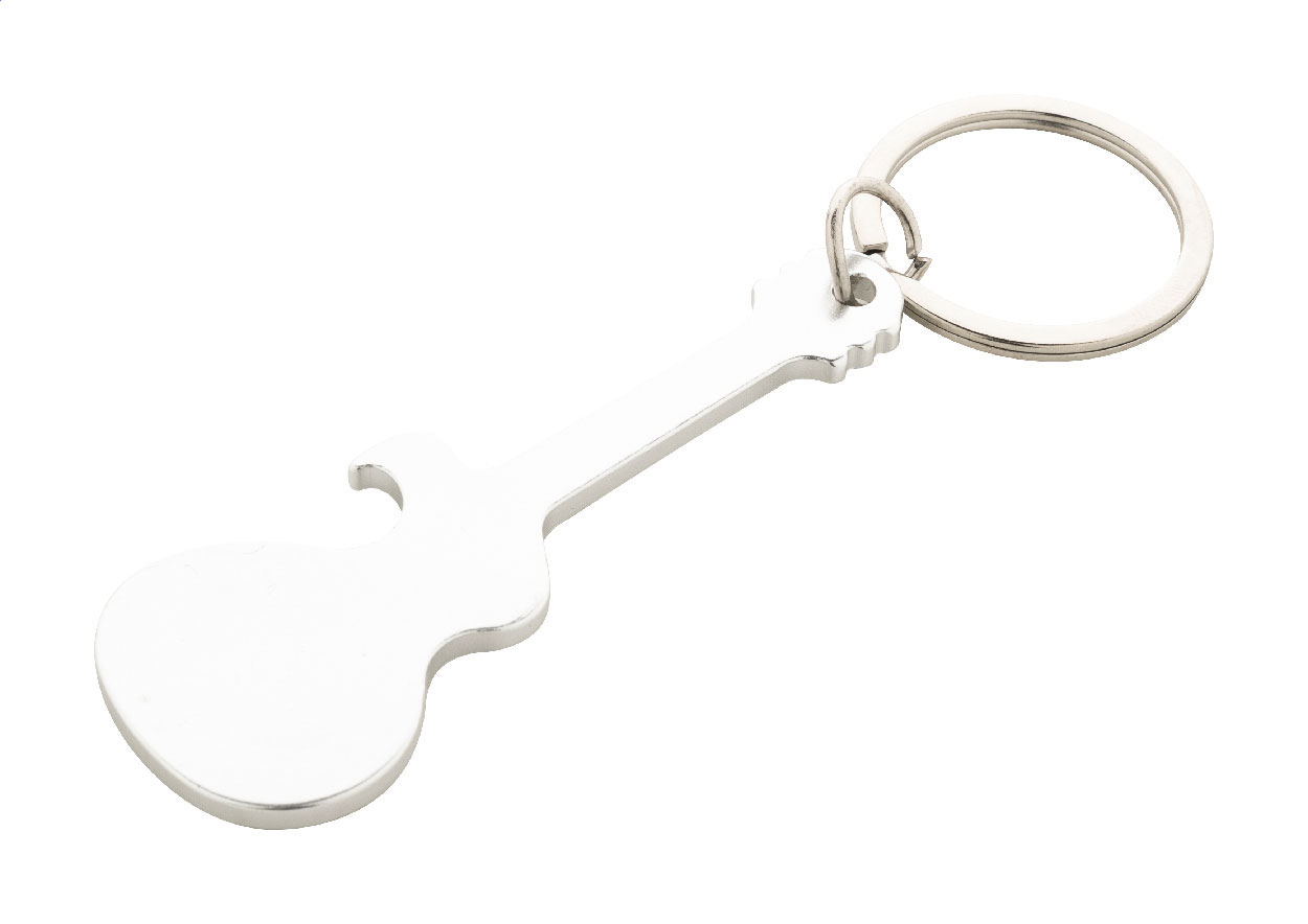 Aluminium-Schlüsselanhänger in Gitarrenform mit Flaschenöffner-Funktion.