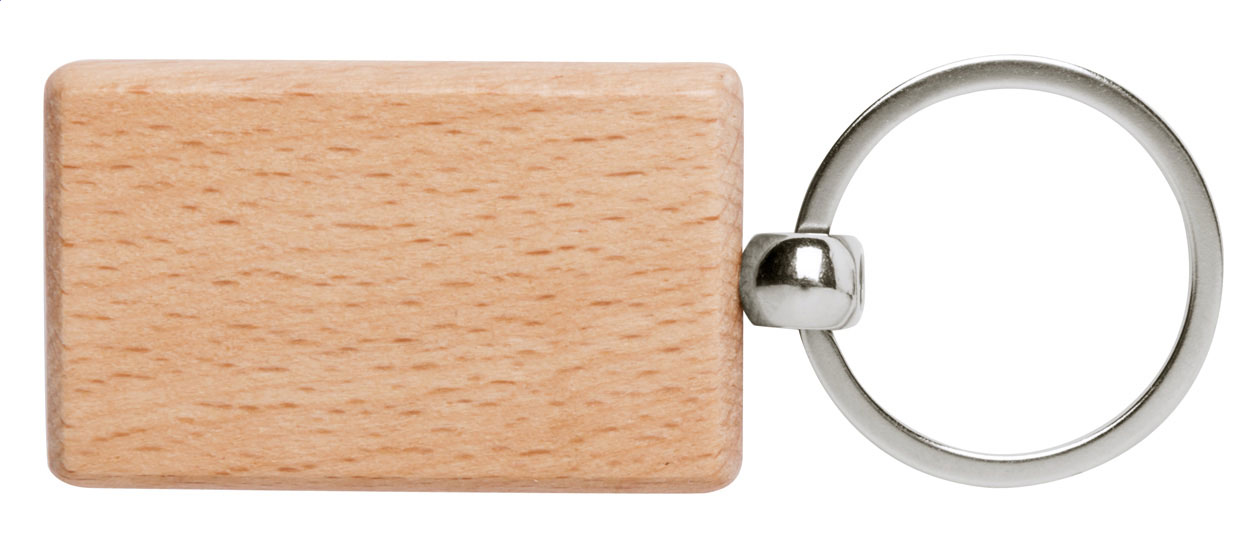 Schlüsselanhänger aus natürlichem Buchenholz mit Metallring.
