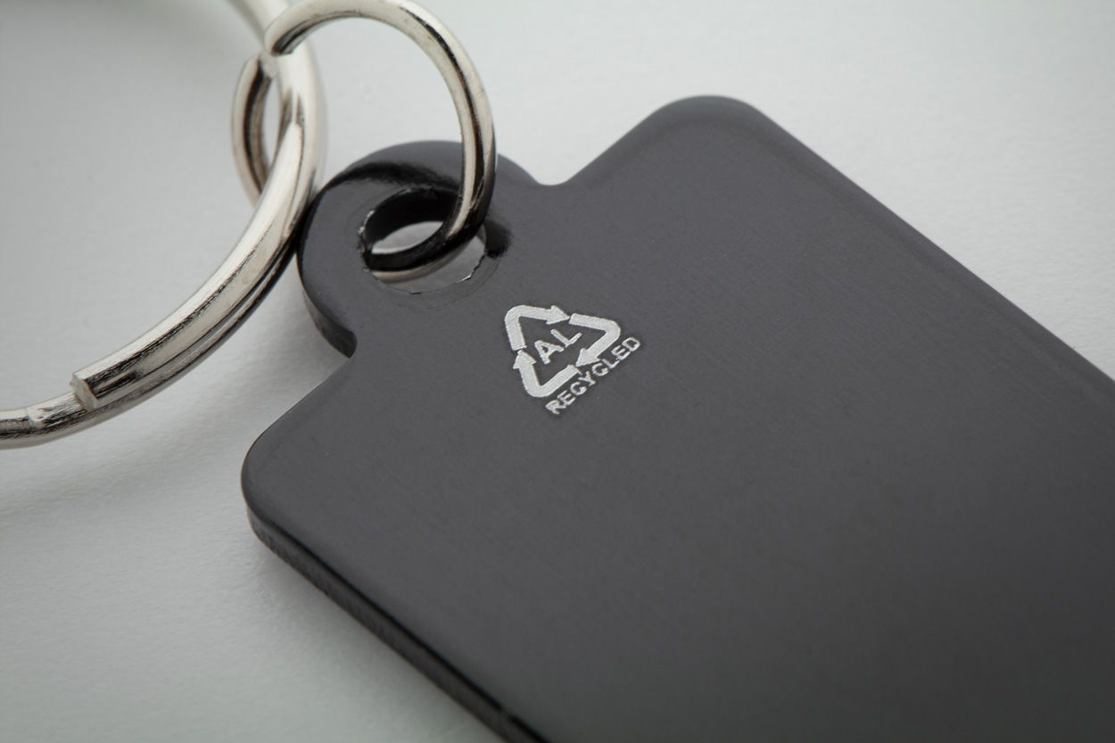 Schlüsselring mit Kapselheber aus recyceltem Aluminium. Glänzendes Finish.Material: AluminiumMaße: 7,5x2,5x1,3cmGewicht: 0.007 kgVeredelung: Bestickung, Bedruckung, BeflockungHandling/Farbcodes: Z/03, 04, 05, 09, 14Druckposition: TOPDruckmaße: 35 x 7 mmDrucktechniken: PD1, DL, DO1, L2, P3