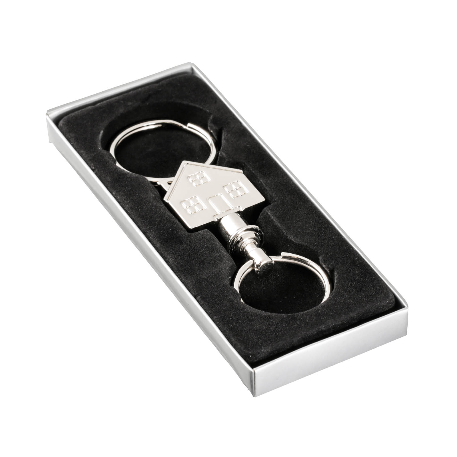 Sicher und sinnig: Abnehmbare Schlüsselringe. Nehmen Sie nur mit, was nötig ist!Metall, silber, abnehmbare RingeFarbe: silberGewicht: 26 gFormat in mm: 63 (L) x 26 (B) x 8 (H)Veredelungsvarianten: LasergravurDruckfläche: 23 x 21 mmHandling: AMaterial: MetallFarbe: Silber