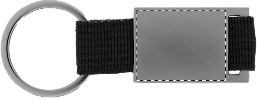 Metall-Schlüsselanhänger mit Polyester-Band.