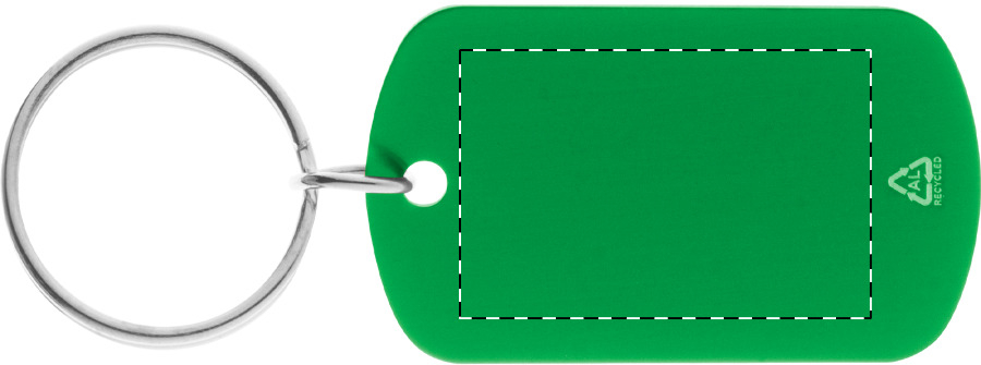 Schlüsselanhänger aus recyceltem Aluminium mit Metallring.