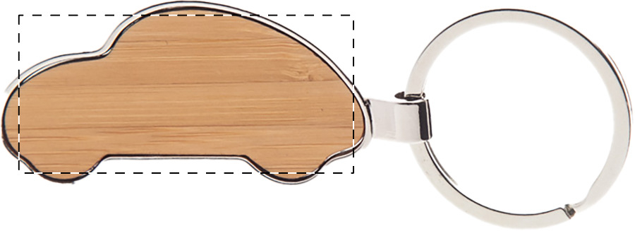 Schlüsselanhänger aus Metall in Autoform mit Bambuseinsatz. In Kraftpapierbox.