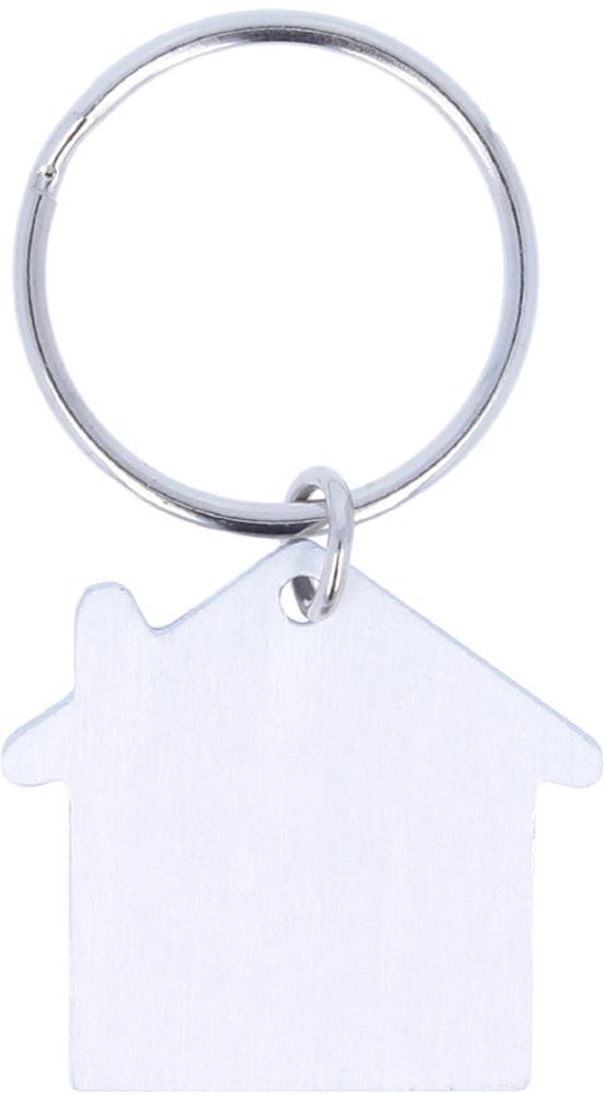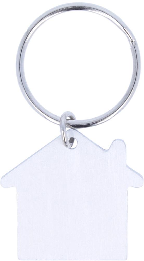 Schlüsselring mit Anhänger aus Metall in Optik eines Hauses. Brushed Finish.