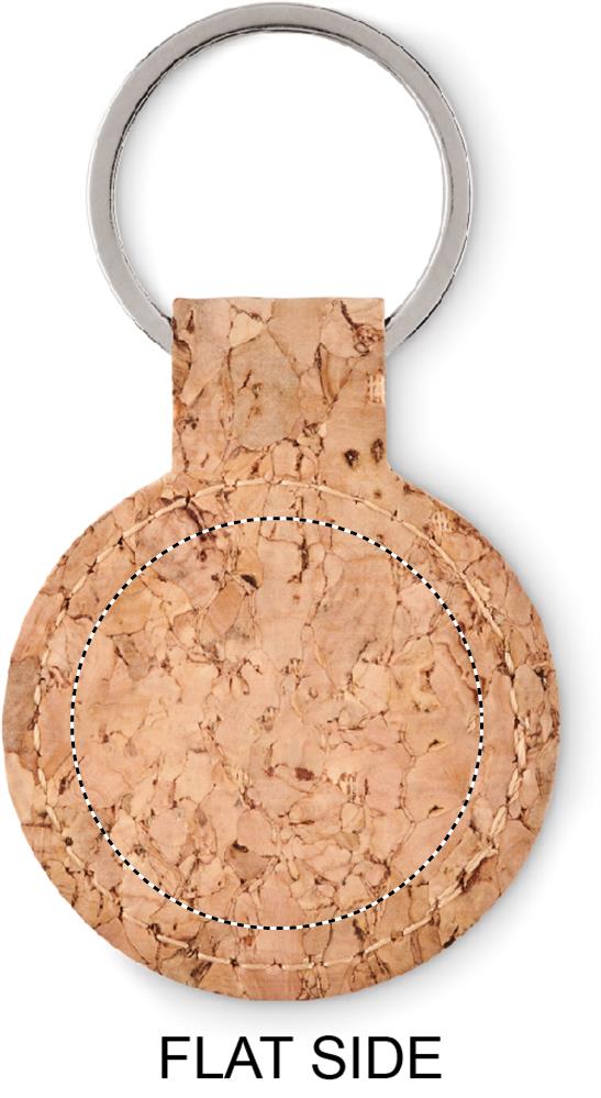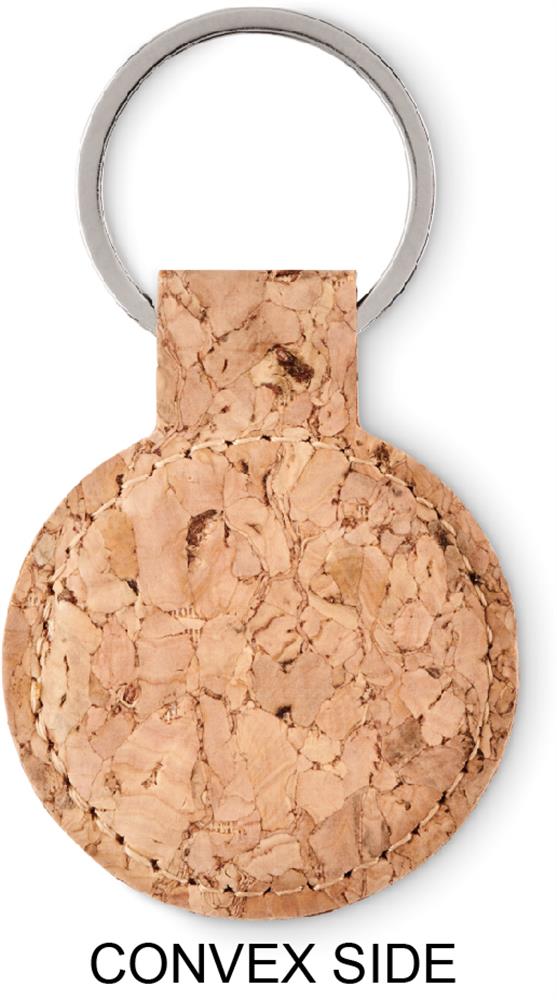 Schlüsselring mit rundem Anhänger aus Kork. Kork ist ein 100% natürliches Material. Aufgrund seiner strukturellen Beschaffenheit und Oberflächenporosität kann das endgültige Druckergebnis pro Artikel Abweichungen aufweisen.