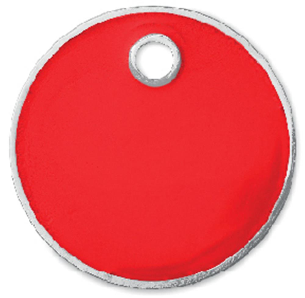 Schlüsselring mit Einkaufswagenchip 1 EUR. Eisen mit Emaillebeschichtung auf der Frontseite. Chip Ø23,2 x 2,1mm Stärke.