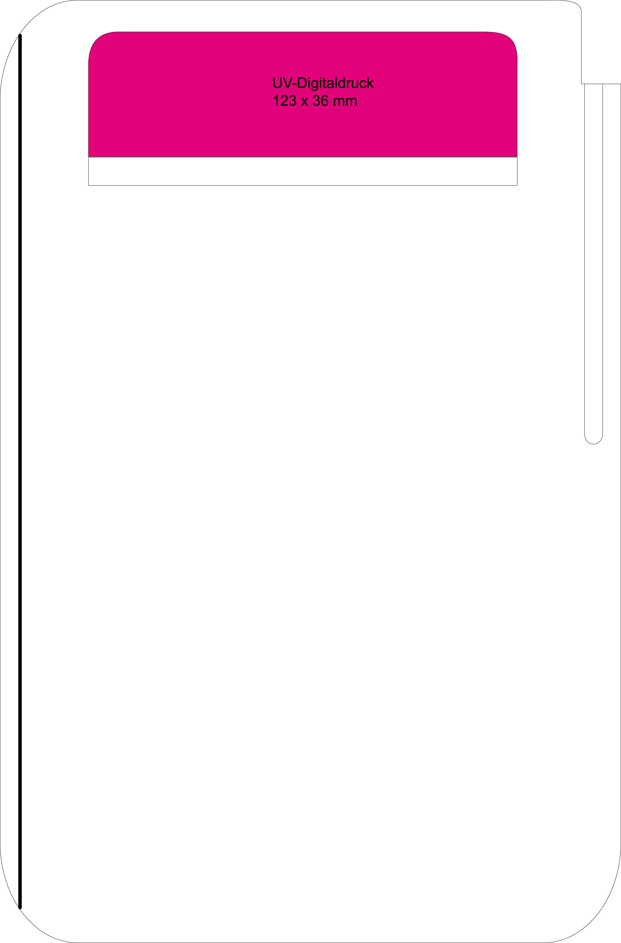 DIN A5 Klemmbrett mit Anlegeleiste, Stifteinkerbung und Skalierung.Material: KunststoffMaße: 270 x 177 x 61 x Ø: 0,00 mmGewicht: 163 gDruckmöglichkeitenPosition 1: HintenDruckart: SiebdruckDruckgruppe: DBMaximale Farben: 5Breite: 150 mmHöhe: 150 mmPosition 2: KlemmeDruckart: SiebdruckDruckgruppe: DBMaximale Farben: 5Breite: 110 mmHöhe: 30 mmPosition 3: BrettDruckart: SiebdruckDruckgruppe: DBMaximale Farben: 5Breite: 100 mmHöhe: 130 mmPosition 4: Klemmbrett mittigDruckart: TampondruckDruckgruppe: TAMBMaximale Farben: 5Durchmesser: 100 mmPosition 5Druckart: UV-DigitaldruckDruckgruppe: UBMaximale Farben: 5Breite: 36 mmHöhe: 123 mm