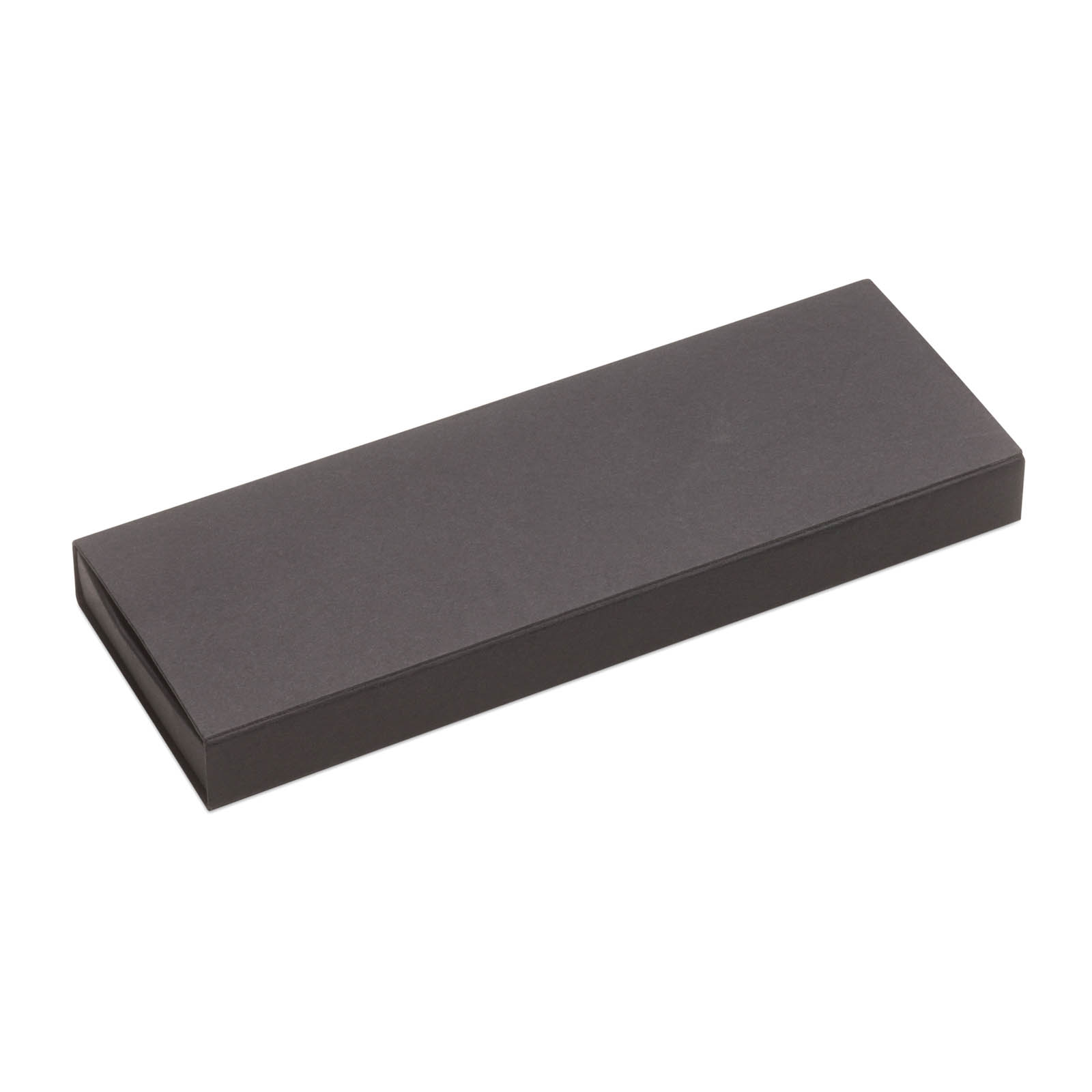 Pappstecketui in schwarz für zwei Schreibgeräte mit Stanzung.Druckbereich: Druckfläche 70mm x 15mm Tampondruck Sonderformat (TT), Druckfläche 60mm x 25mm Tampondruck Sonderformat (TT)Oberfläche: GedecktMaterial: PappeFarbe: SchwarzGewicht: 8,46 g
