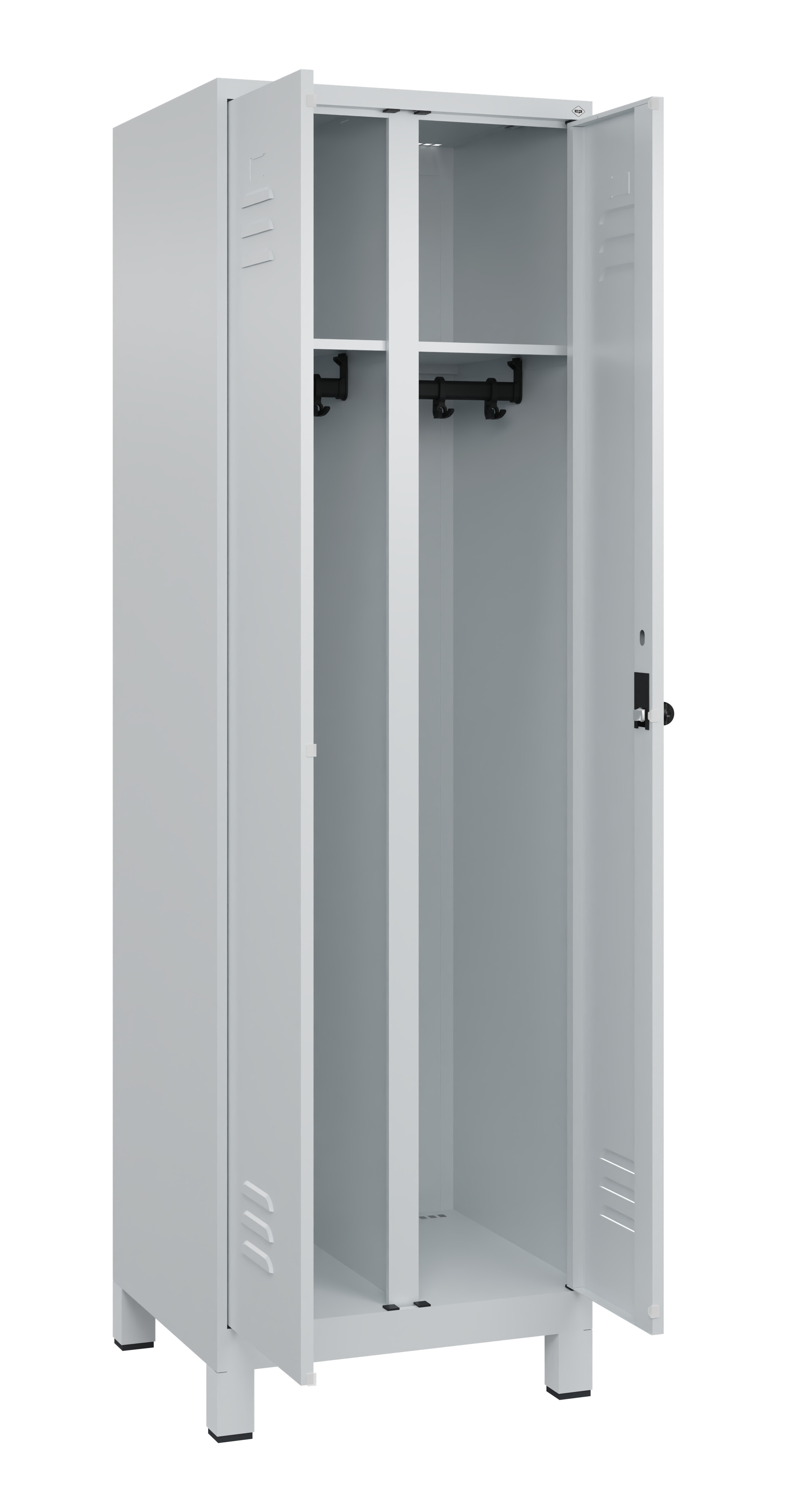 Schwarz-Weiß-Spind Classic Plus, Füße, 2 Abteile, 1950x600x500mm RAL 7035 Lichtgrau RAL 7035 Lichtgrau