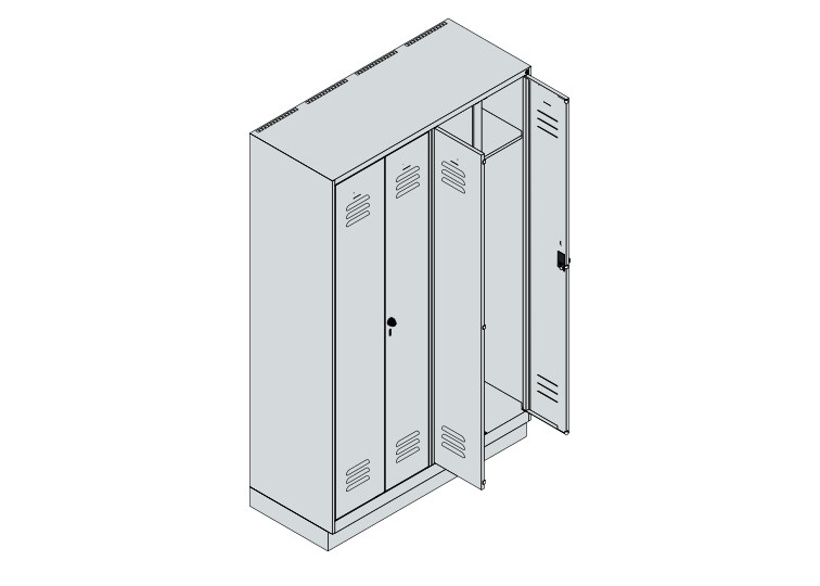 Schwarz-Weiß-Spind Classic Plus, Sockel, 4 Abteile, 1950x1200x500mm RAL 7035 Lichtgrau RAL 7035 Lichtgrau