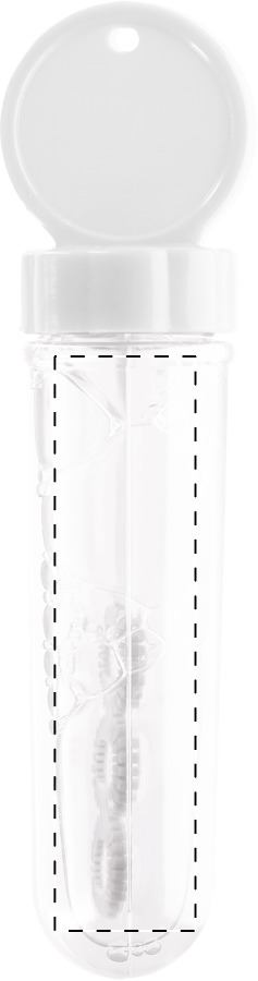 Seifenblasen in Kunststoffgefäß. Mit 30 ml Seifenlauge.Maße: ø28×127 mmFüllmenge: 30 mlMaterial: Kunststoff (PE), Kunststoff (PP)Veredelungsposition 1: ObenTechnologie: DomingDurchmesser: 27Druckcode: DO2Technologie: Vinyl-AufkleberDurchmesser: 27Druckcode: VSVeredelungsposition 2: SeifenblasenTechnologie: TampondruckMaximale Farben: 2Durchmesser: 0Druckcode: P1