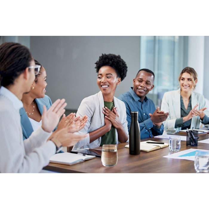 Elegantes 3teiliges Geschenk-Set: DIN A5 Notizbuch mit gebundenem Hard Cover aus RPET. 80 Blatt ( 160 Seiten) liniertes Recyclingpapier. Elastisches Verschlussband, Stiftschlaufe und Lesebändchen. Passender Drehkugelschreiber. Doppelwandige Isolierflasche aus Edelstahl. Füllmenge: 500 ml. Lieferung in Geschenkbox.