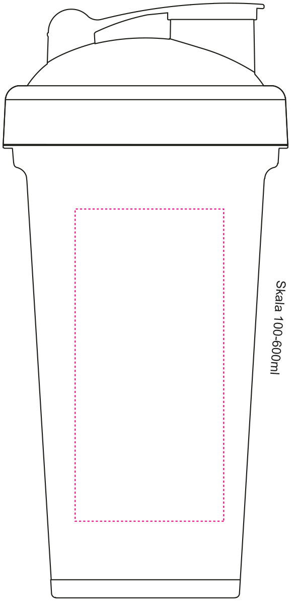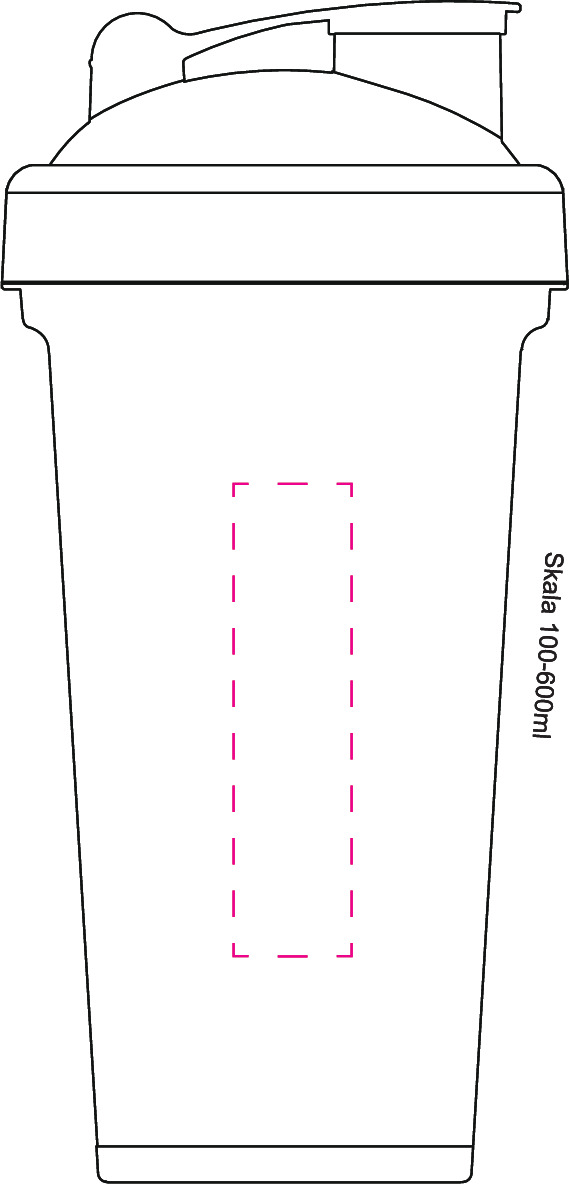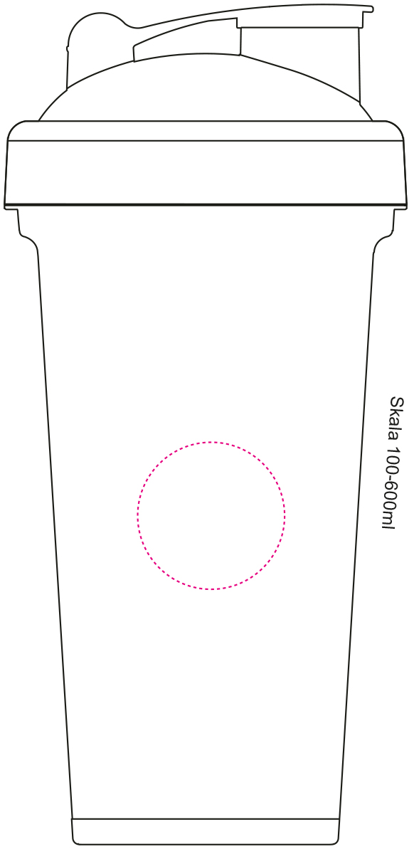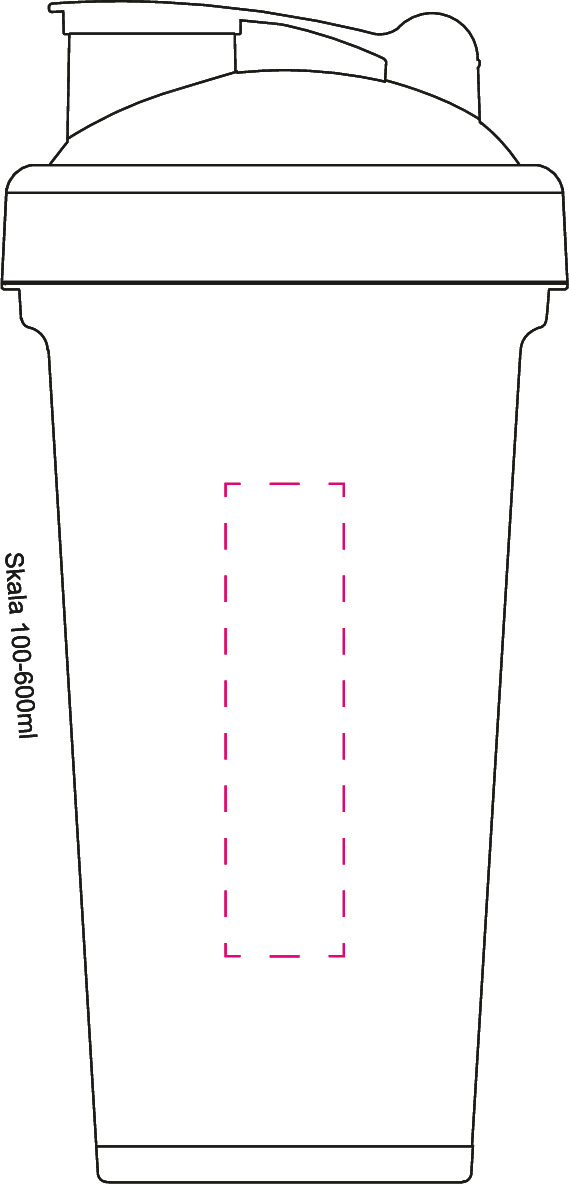 Nach dem Training einen Eiweiß-Shake zubereiten. Dieser transparente Shaker mit geprägter Skala in 50 ml Schritten und Schraubdeckel mit verschließbarer Trinköffnung beinhaltet ein herausnehmbares Sieb, mit dem sich Shakepulver und Flüssigkeit bei gutem Schütteln optimal vermischen. Der Mix-Becher lässt sich komplett auseinandernehmen und somit gut reinigen. Füllmenge: 0,6 Liter.Material: KunststoffMaße: 0 x 0 x 120 x Ø: 96,00 mmGewicht: 100 gDruckmöglichkeitenPosition 1: Zwischen den abgeflachten Segmenten - linksDruckart: SiebdruckDruckgruppe: DCMaximale Farben: 2Breite: 50 mmHöhe: 105 mmPosition 2: Zwischen den abgeflachten SegmentenDruckart: TampondruckDruckgruppe: TAMCMaximale Farben: 5Durchmesser: 35 mmPosition 3: Auf dem abgeflachten Segment ohne SkalaDruckart: TampondruckDruckgruppe: TAMCMaximale Farben: 5Breite: 20 mmHöhe: 85 mmPosition 4: Auf dem Verschluß DeckelDruckart: TampondruckDruckgruppe: TAMCMaximale Farben: 5Breite: 25 mmHöhe: 20 mmPosition 6: Seitlich auf Shaker - linksDruckart: TampondruckDruckgruppe: TAMCMaximale Farben: 5Breite: 20 mmHöhe: 80 mmPosition 7: Seitlich auf Shaker - rechtsDruckart: TampondruckDruckgruppe: TAMCMaximale Farben: 5Breite: 20 mmHöhe: 80 mmPosition 8: Zwischen den abgeflachten Segmenten - rechtsDruckart: SiebdruckDruckgruppe: DCMaximale Farben: 2Breite: 50 mmHöhe: 105 mm