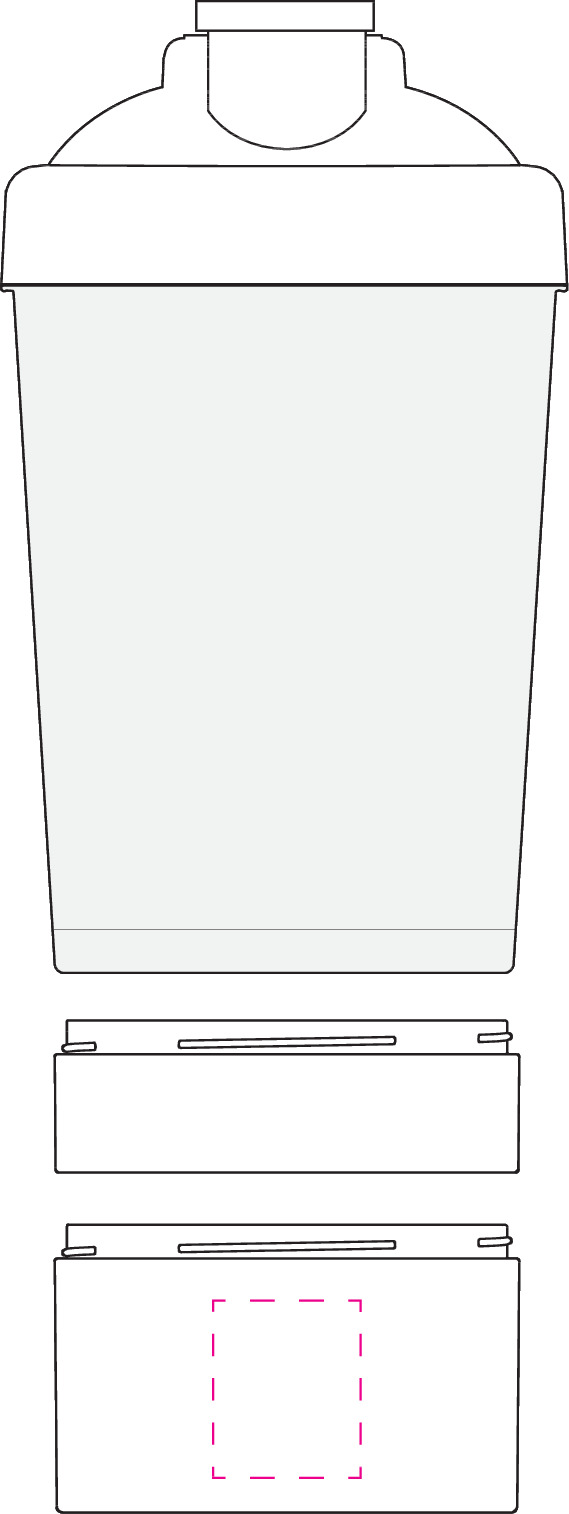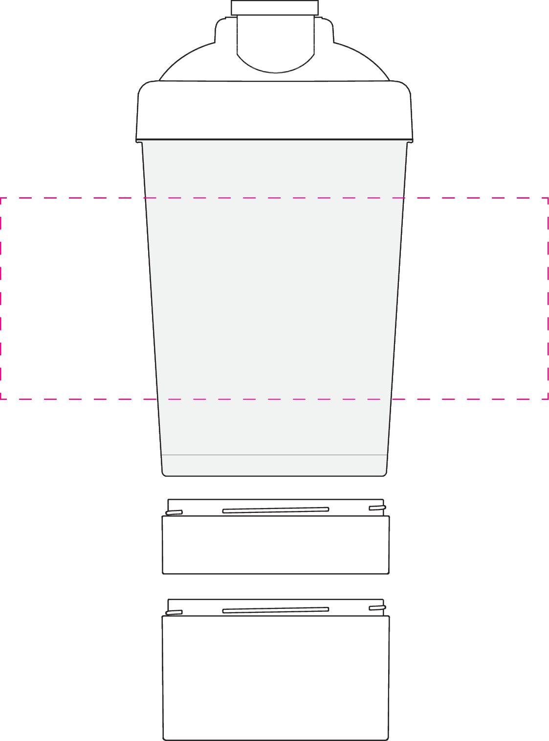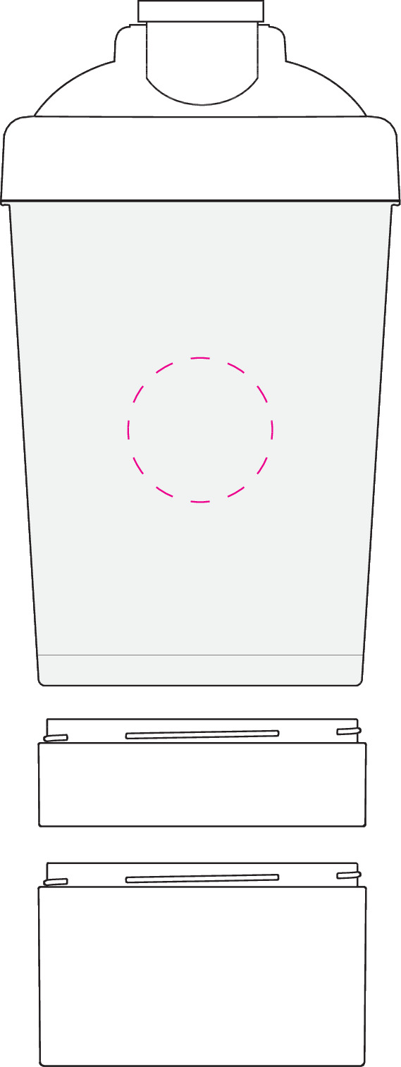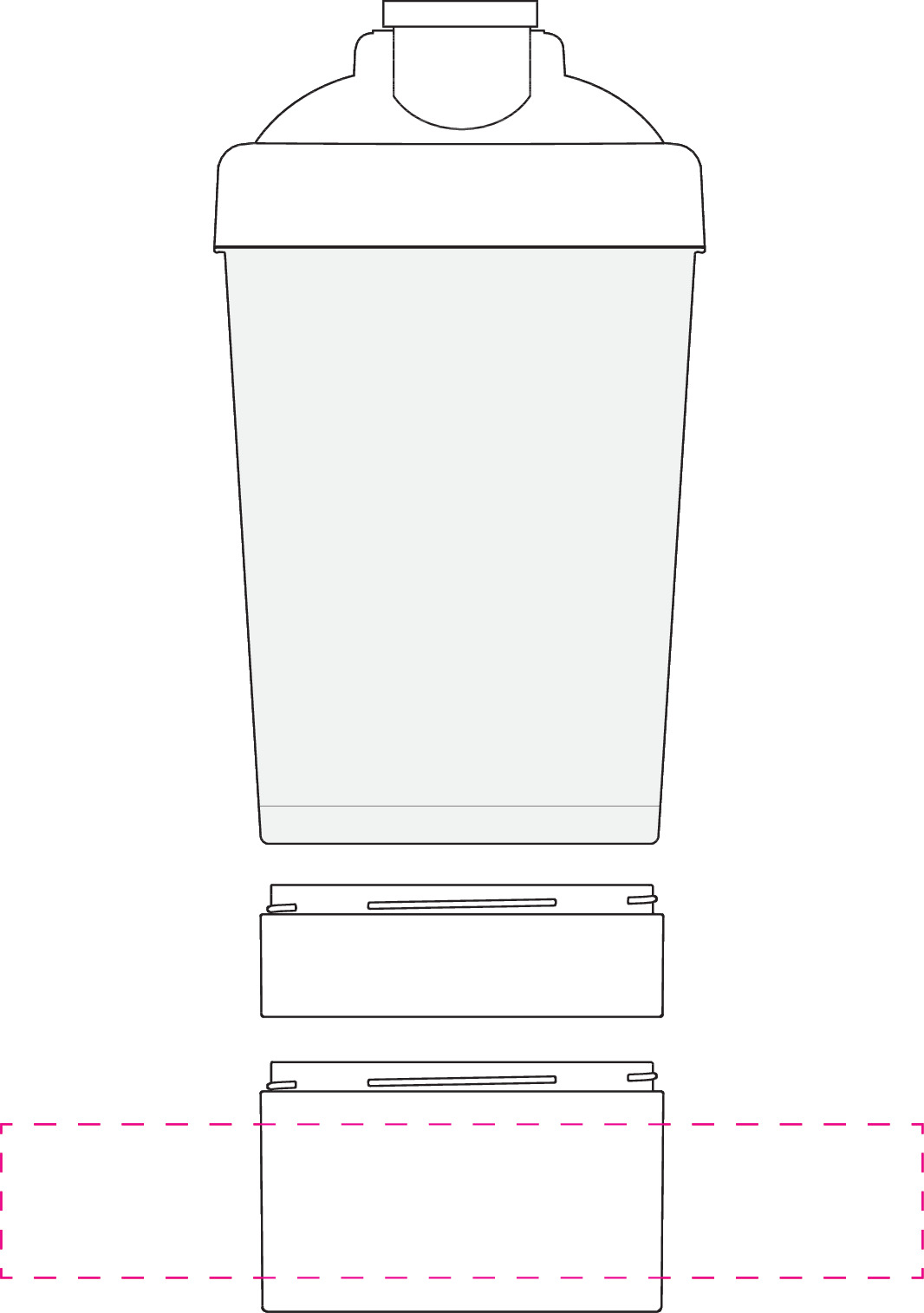 Shake it up! Ideal für den Eiweiß-Shake nach dem Training. Dieser modulare Shaker mit geprägter Skala in 50 ml Schritten und Schraubdeckel mit verschließbarer Trinköffnung beinhaltet ein herausnehmbares Sieb, mit dem sich Shakepulver und Flüssigkeit bei gutem Schütteln optimal vermischen. Zusätzlich verfügt dieser Shaker über zwei abnehmbare Kammern, welche sich separat befüllen lassen. Der Mix-Becher lässt sich komplett auseinandernehmen und somit leicht reinigen. Füllmenge (Shaker ohne Zusatzfächer): 0,4 Liter.Material: KunststoffMaße: 0 x 0 x 49 x Ø: 96,00 mmGewicht: 146 gDruckmöglichkeitenPosition 1: Mittig seitlich gegenüber SkalaDruckart: SiebdruckDruckgruppe: DCMaximale Farben: 1Breite: 190 mmHöhe: 70 mmPosition 2: Mittig gegenüber SkalaDruckart: TampondruckDruckgruppe: TAMCMaximale Farben: 5Durchmesser: 35 mmPosition 3: Auf dem VerschlussDruckart: TampondruckDruckgruppe: TAMCMaximale Farben: 5Breite: 25 mmHöhe: 20 mmPosition 4: Auf PulverfachDruckart: TampondruckDruckgruppe: TAMCMaximale Farben: 5Breite: 25 mmHöhe: 30 mmPosition 5: Auf PulverfachDruckart: SiebdruckDruckgruppe: DCMaximale Farben: 1Breite: 180 mmHöhe: 30 mm
