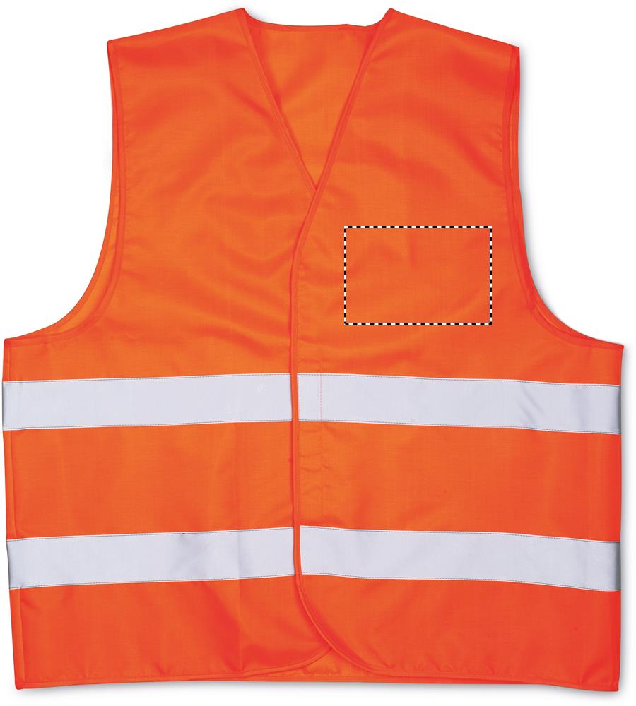 Sicherheitsweste aus 100 % gestricktem Polyester mit reflektierendem Band (Klasse 2). Hohe Sichtbarkeit. EN ISO 20471.Material: PETMaße: 65,5x70cmGewicht: 0.14 kgVeredelung: Bestickung, Bedruckung, BeflockungHandling/Farbcodes: Z/08, 10Druckposition: FRONTDruckmaße: 150 x 100 mmDrucktechniken: S2, T1, TD1, TRDruckposition: BACKDruckmaße: 250 x 190 mmDrucktechniken: S2, T1, TD1, TR