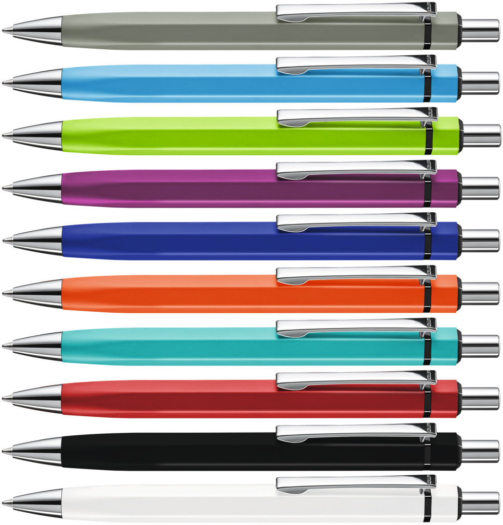Farbiger Kugelschreiber aus Kunststoff, schwarzschreibend.Maße: ø10×138 mmSchreibgerät-Typ: KugelschreiberSchreibgerät-Mechanik: DruckmechanikSchreibfarbe: SchwarzMinentyp: Normale MineLinienstärke: 1 mmMaterial: KunststoffVeredelungsposition 1: Korpus - rechts vom ClipTechnologie: TampondruckMaximale Farben: 4Durchmesser: 0Druckcode: P0Technologie: TampondruckMaximale Farben: 1Durchmesser: 0Druckcode: P1Technologie: UV LED DruckDurchmesser: 0Druckcode: UVAVeredelungsposition 2: Korpus - links vom ClipTechnologie: TampondruckMaximale Farben: 4Durchmesser: 0Druckcode: P0Technologie: TampondruckMaximale Farben: 1Durchmesser: 0Druckcode: P1Technologie: UV LED DruckDurchmesser: 0Druckcode: UVAVeredelungsposition 3: KlipTechnologie: TampondruckMaximale Farben: 4Durchmesser: 0Druckcode: P0Veredelungsposition 4: Korpus - in Verlängerung vom ClipTechnologie: TampondruckMaximale Farben: 4Durchmesser: 0Druckcode: P0