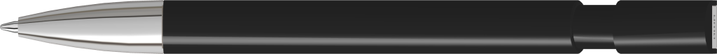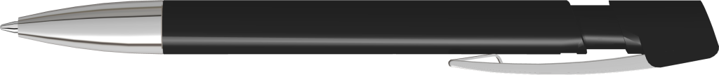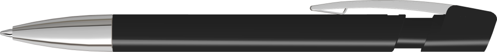 Druckkugelschreiber mit gedeckt glänzendem Gehäuse in uni weiß oder schwarz, flexiblem Metallclip und schwerer Metallspitze glanzverchromt.