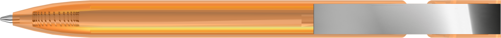 Druckkugelschreiber mit transparent glänzendem Gehäuse und flexiblem Metallclip glanzverchromt.