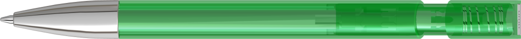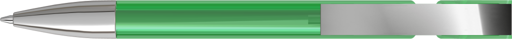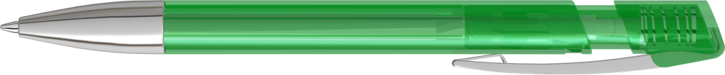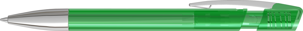 Druckkugelschreiber mit transparent glänzendem Gehäuse, flexiblem Metallclip und schwerer Metallspitze glanzverchromt.Druckbereich: Auf dem Clip 40mm x 6mm Lasergravur (L), auf dem Clip 40mm x 6mm Tampondruck (MT), seitlich vom Clip 60mm x 13mm Siebdruck (S), gegenüber vom Clip 60mm x 13mm Siebdruck (S), in Clipverlängerung 40mm x 20mm Siebdruck (S), auf dem Clip 40mm x 6mm Einzelnamensgravur (EL)