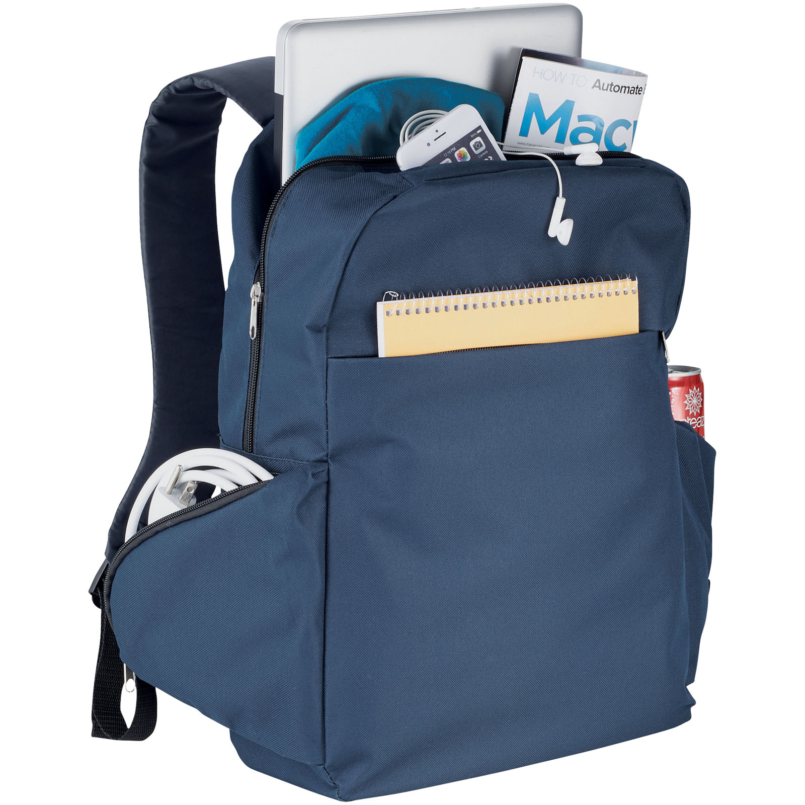 Großes Hauptfach mit doppeltem Reißverschluss und gepolsterter Laptop Hülle, geeignet für die meisten 15" Laptops. Vier zusätzliche Organisationsfächer mit Reißverschluss für Ihre technischen Accessoires. Zwei seitliche Fächer mit Reißverschluss für Kabel, Ladegeräte uvm., Tasche mit Reißverschluss auf der Vorderseite. Einschubtasche oben mit Reißverschluss für schnellen Zugriff. Gepolsterter Rücken. Doppelt gepolsterte, verstellbare Schultergurte und Tragegriff.Besonderheiten:- Kapazität der Tasche: 21- Tragekomfort: Gepolsterte Schultergurte , Verstellbare Schultergurte- Laptop-Fach: Ja- Größe der Laptop-Tasche: 15 Zoll- Art der Tasche: Laptop, Vorderseite- RFID-Blocker: Nein- Mit Reißverschluss: Nein- Typ des Hauptetiketts: Gewebtes Hauptetikett- BSCIMaterial: 600D PolyesterGewicht: 337 gGröße: 29 x 44,5 x 13 cmStandard-Druck---------------Druckart: SiebdruckDruckposition: VorderseiteDruckgröße: 180 x 200 mm mm (BxH)Druckfarben maximal: 4Suchwörter: Tasche, Taschen, Packsack, Reisetasche, Reisetaschen, Reise, Rucksack, Rucksäcke, Konferenztasche, Konferenztaschen, Konferenz, Kuriertasche, Kuriertaschen, Dokument, Dokumente, Messetasche, Laptop-Tasche, Laptop-Taschen, Laptop, Laptops, Tablet-Tasche, Tablet-Taschen, Tablet, Tablets